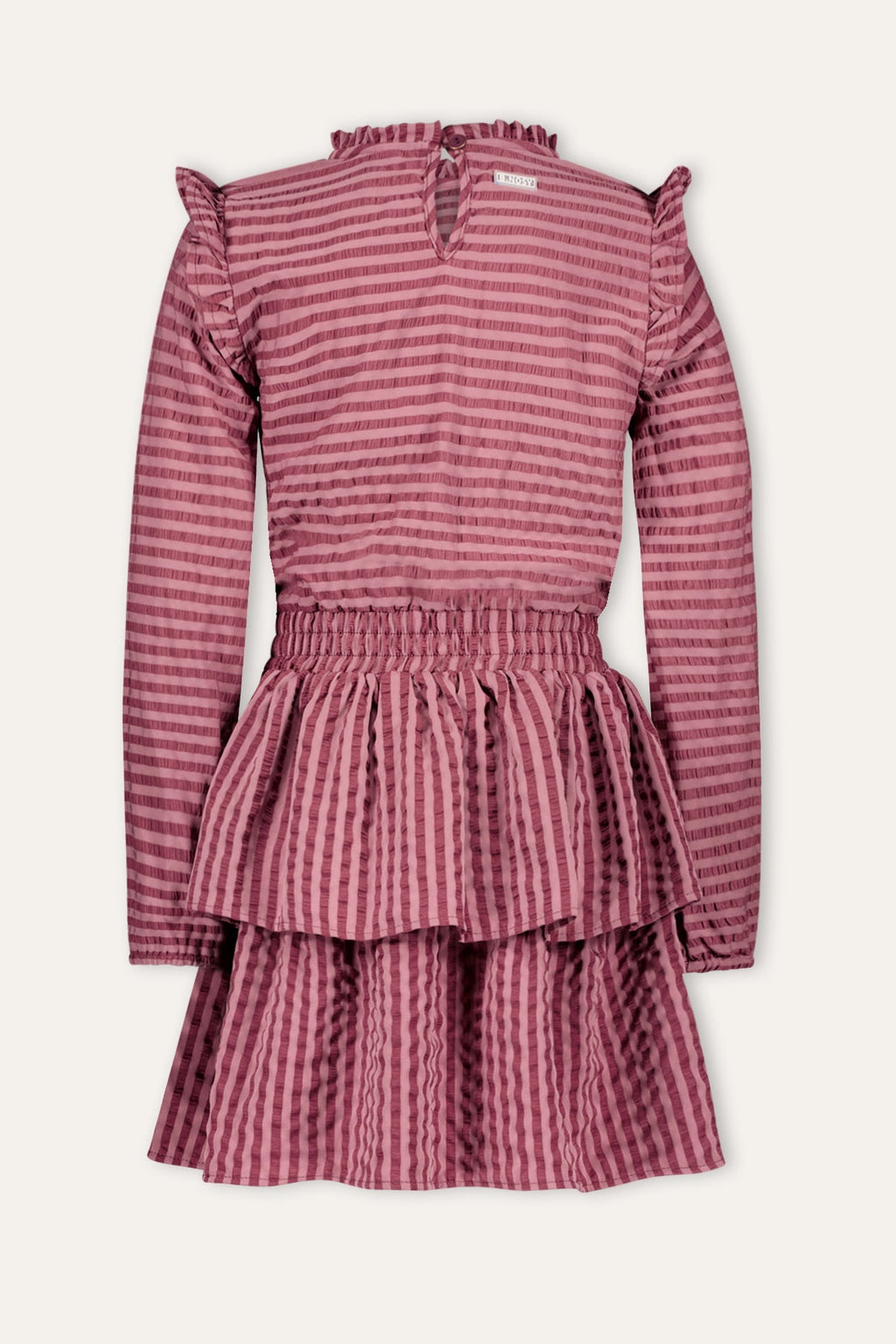 Dit prachtige jurkje is perfect voor een elegante, girly look! Het jurkje is gemaakt van een soepel vallende stof. De vrolijke roze streepjes print voegt een speels tintje toe aan de look. Met de elastieken band ben je verzekerd van een comfortabele en perfecte pasvorm. Dress to impress!
