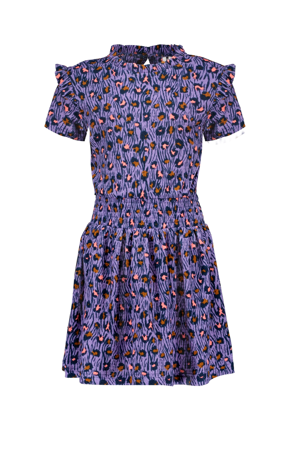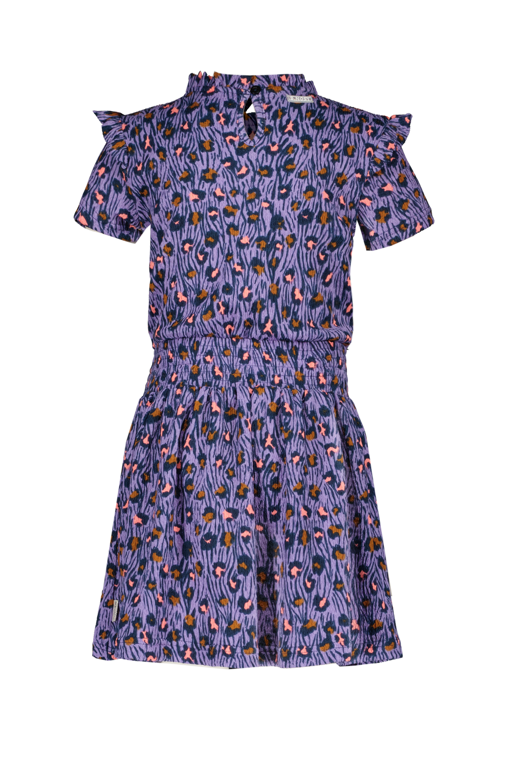 B.Nosy B.Joyfull all-over-print zomerjurk met opstaand kraagje en ruffles bij de mouwinzet. Voorzien van gesmockte tailleband.