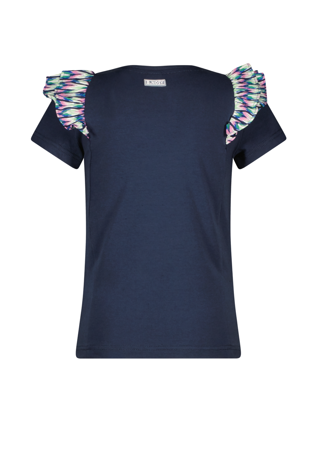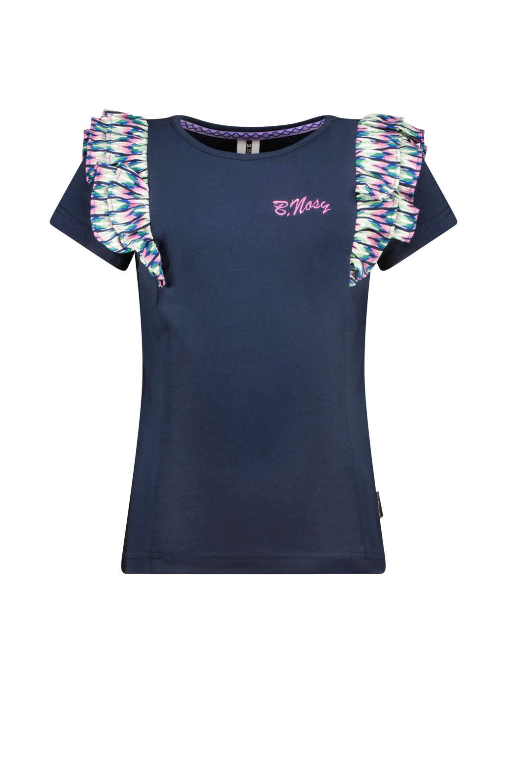 B.Nosy B.Inspiring t-shirt korte mouw met all-over-print ruffles bij de schouders en een subtiel artwork op de borst.