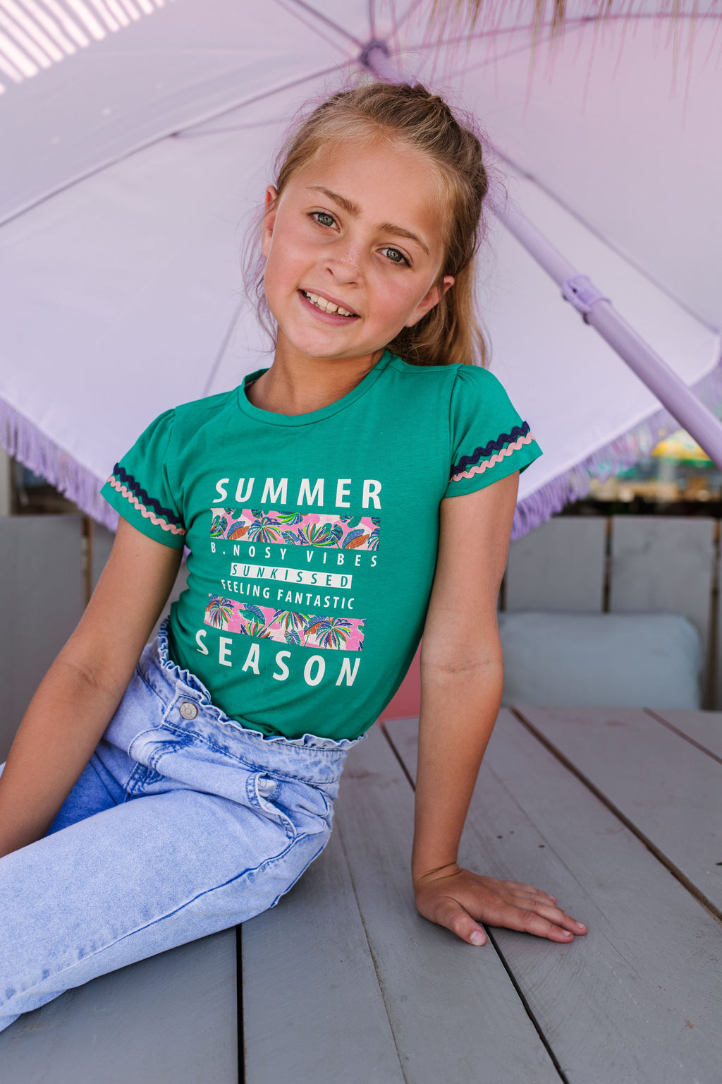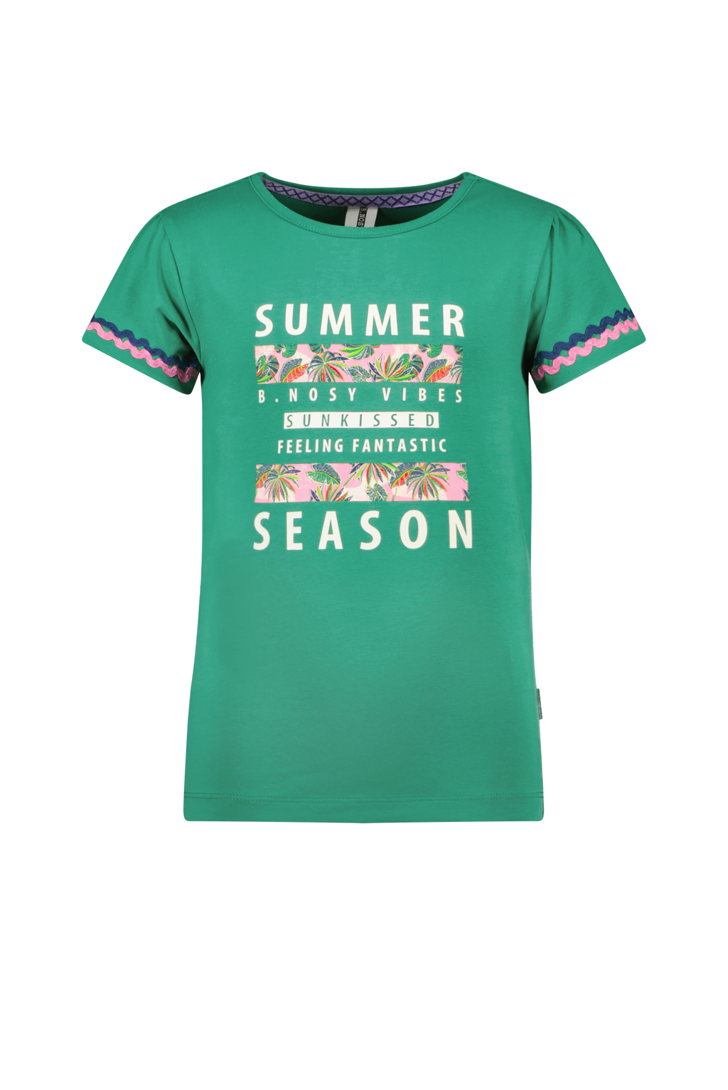 B.Nosy t-shirt met print en zigzag tape op de mouwen. Combineer met een toffe jeans voor een casual outfit, of draag hem op een vrolijk rokje voor een echte zomerse look!