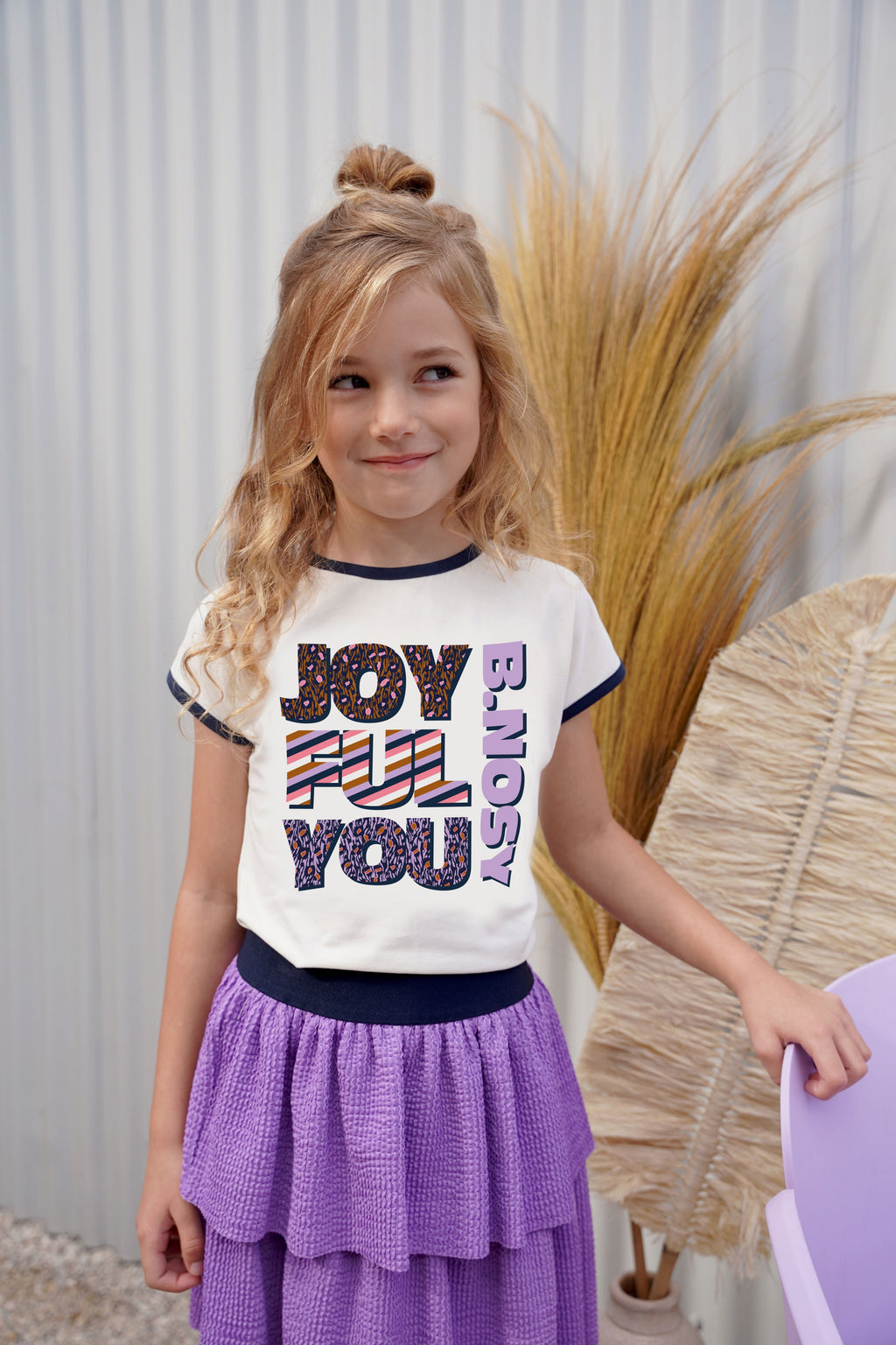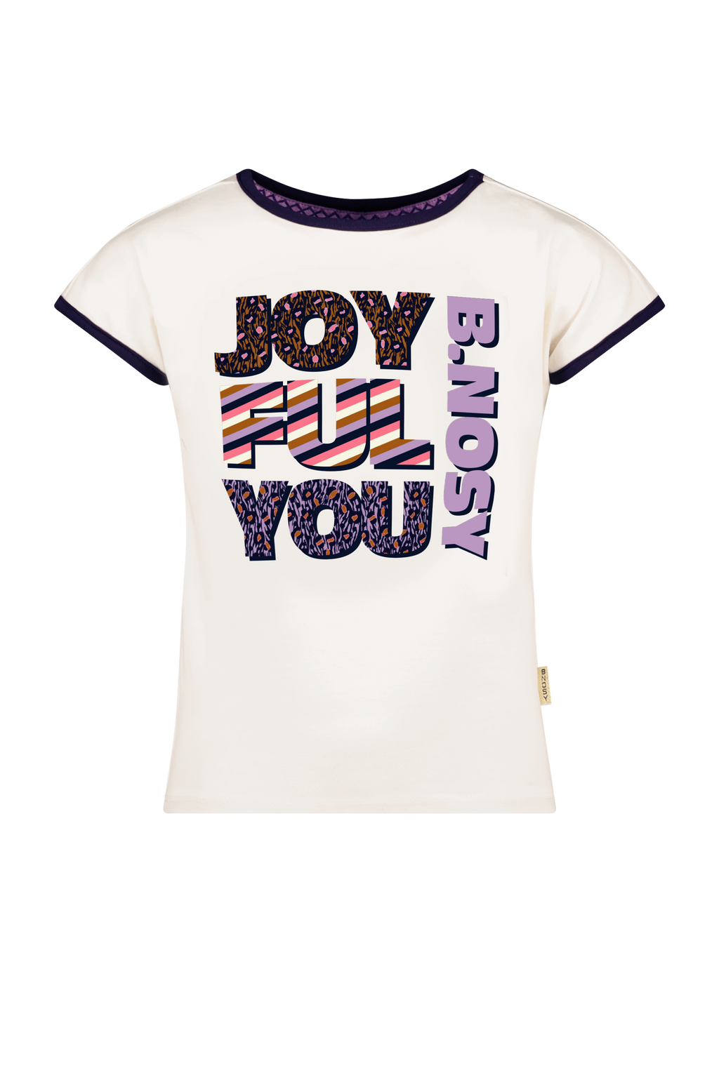 Dit leuke t-shirt van B.nosy is gemaakt van biologisch katoen en heeft een mooie print op de voorzijde. Door de vele kleurtjes in de print, is dit shirt super te combineren met andere items uit thema B.Joyful!