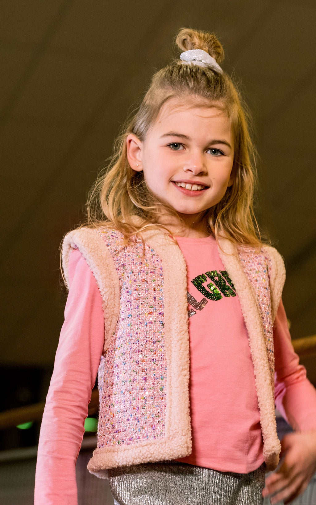 Maak je outfit helemaal af met de B.Nosy Gitte gilet. Het gilet heeft een zachte teddy binnenkant en heeft diverse kleuren in de boucle stof verwerkt. De stof is afgewerkt met subtiele pailetten. Combineer dit gave gilet met de bloesjes en tops uit de collectie, bijvoorbeeld met de Taylor top!