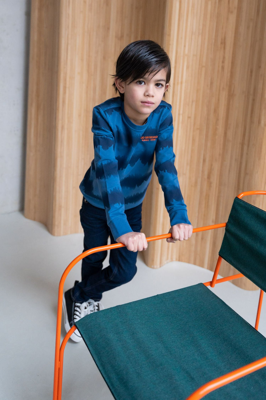 We love de Ollie! Deze trui heeft lange mouwen en is gemaakt van een fijn en zacht materiaal. De heeft een toffe tie-dye look en een tof oranje geborduurd artwork op de linkerborst. De trui is beschikbaar in een toffe blauwe en groene kleur.