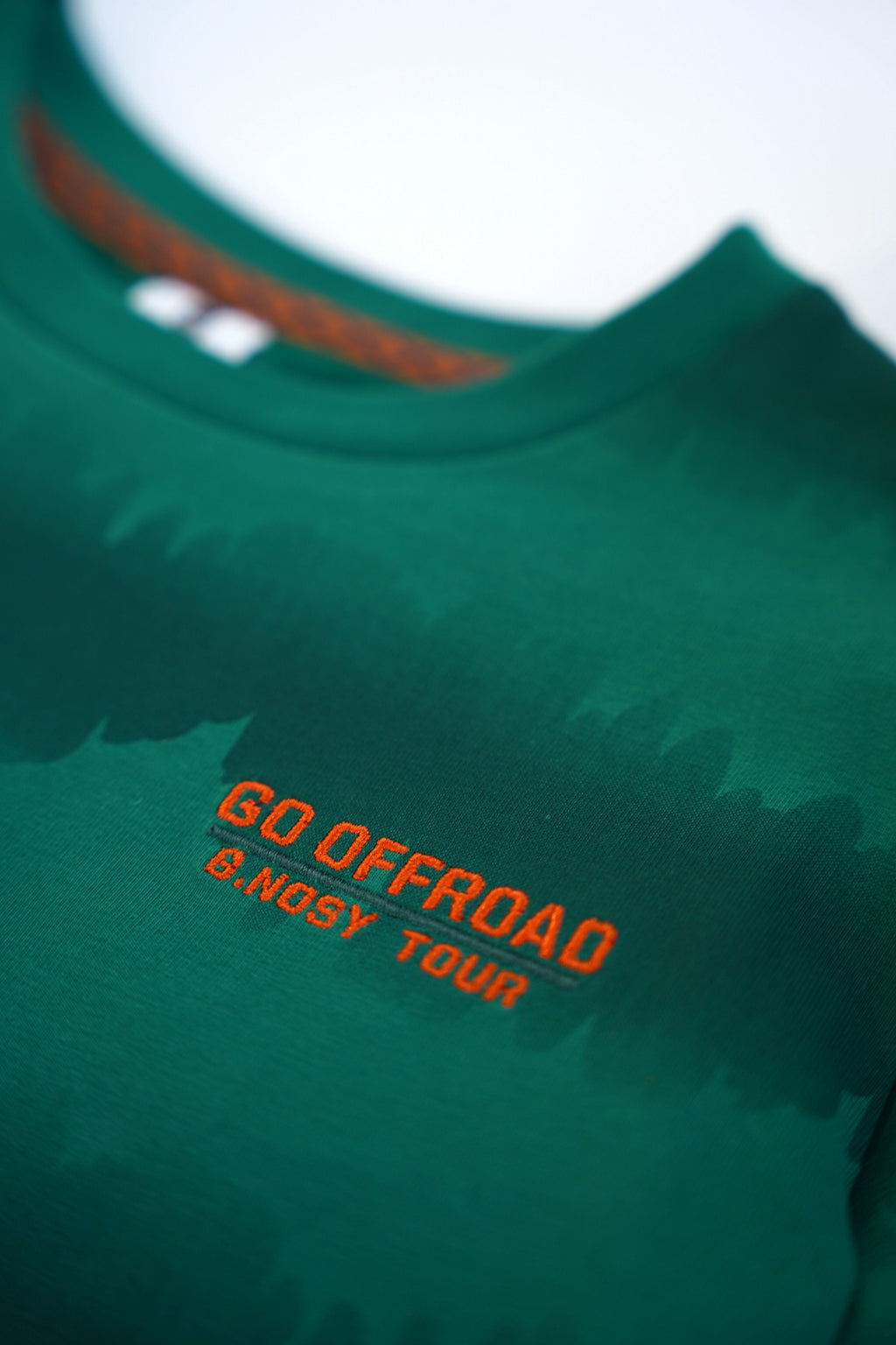 We love de Omar! Deze trui heeft lange mouwen en is gemaakt van een fijn en zacht materiaal. De heeft een toffe tie-dye look en een tof oranje geborduurd artwork op de linkerborst. De trui heeft een toffe donkergroene kleur!