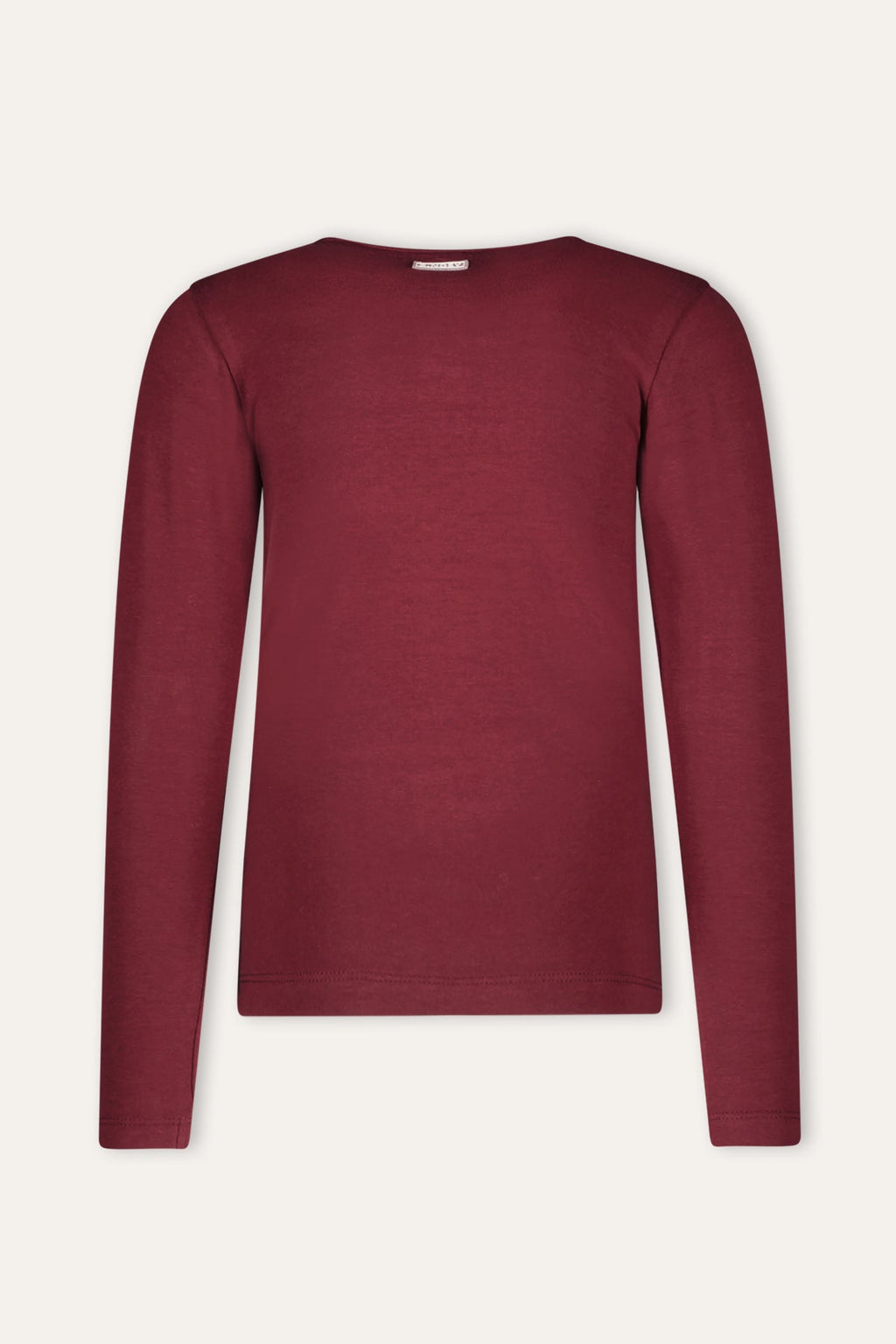B.Nosy top Ovie is een mooi basic shirtje in een diep rode kleur en speelse B.Nosy print. Draag het shirtje met B.Nosy short dirkje of rokje Djill voor een complete outfit!