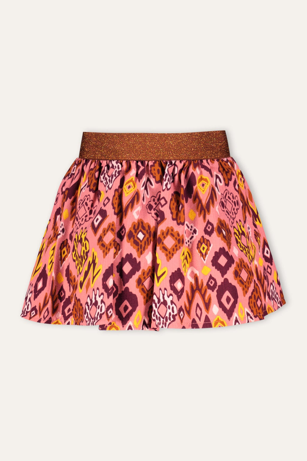 Dit rokje is een echte eyecatcher voor de meisjes die durven op te vallen! Deze vrolijke rok is een feest voor het oog, door de levendige paarse tinten en unieke print. Het rokje valt mooi en draagt lekker comfy door de elastieken glittertailleband.
