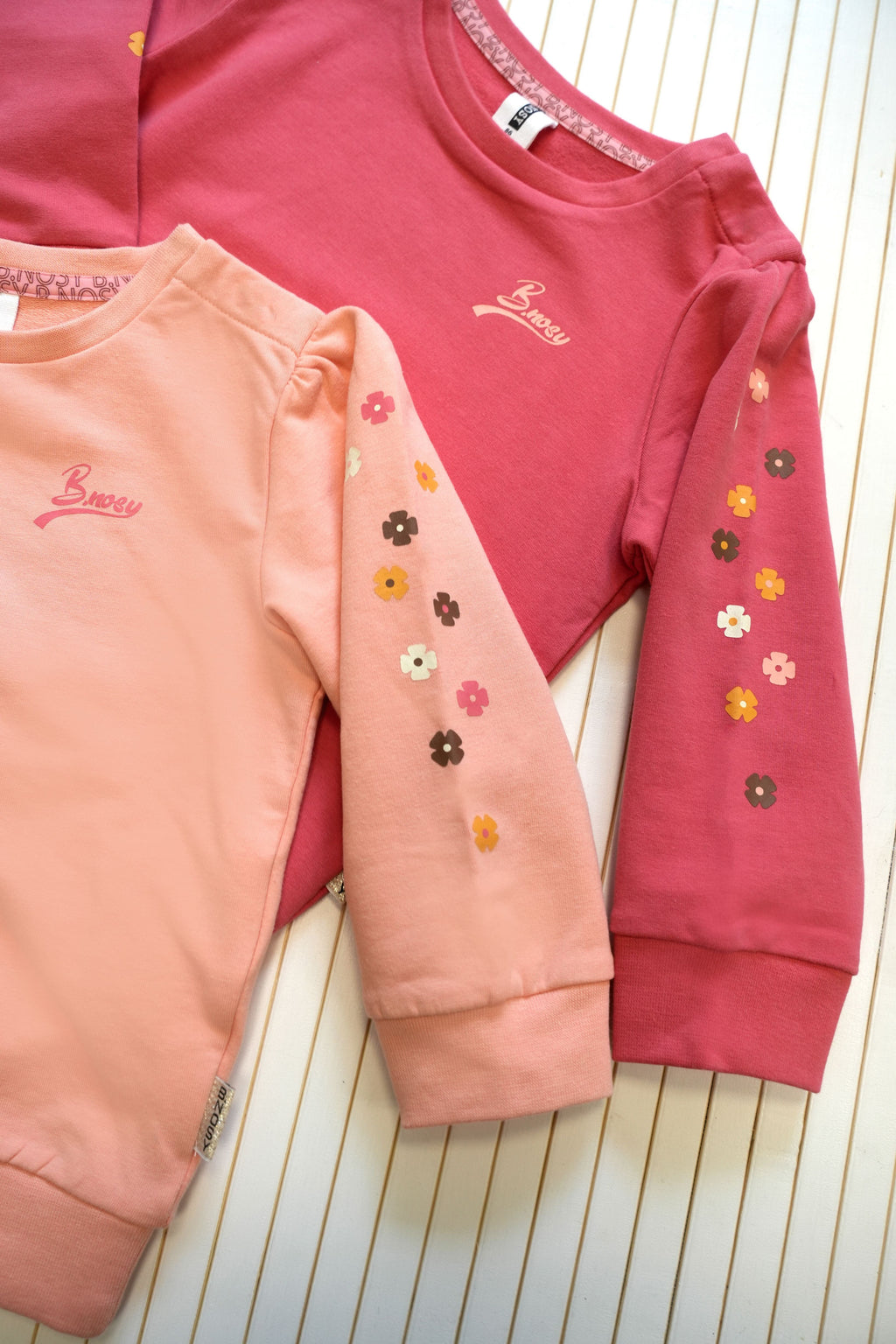 Laat je kleintje vrolijk zijn in deze schattige B.Nosy sweater Sofia van B.Nosy! Met een heerlijk zachte brushed binnenkant en bloemetjesprint op de mouwen, brengt deze sweater comfort en stijl samen. De handige drukknoopjes op de schouder maken aan- en uitkleden gemakkelijk! Gemaakt van biologisch katoen in een vrolijke kleur en perfect te combineren met de flared broekjes uit de collectie voor een speelse en trendy look!