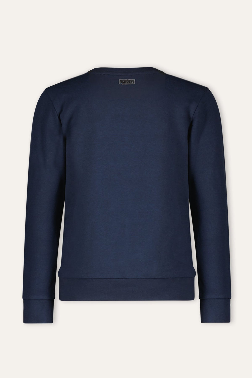 Trui Ted is een echte musthave voor jouw zoon dit jaar! De trui heeft een mooie donkerblauwe kleur en leuke kleurrijke strepen op de borst. Combineer deze trui met een toffe spijkerbroek voor een coole look.