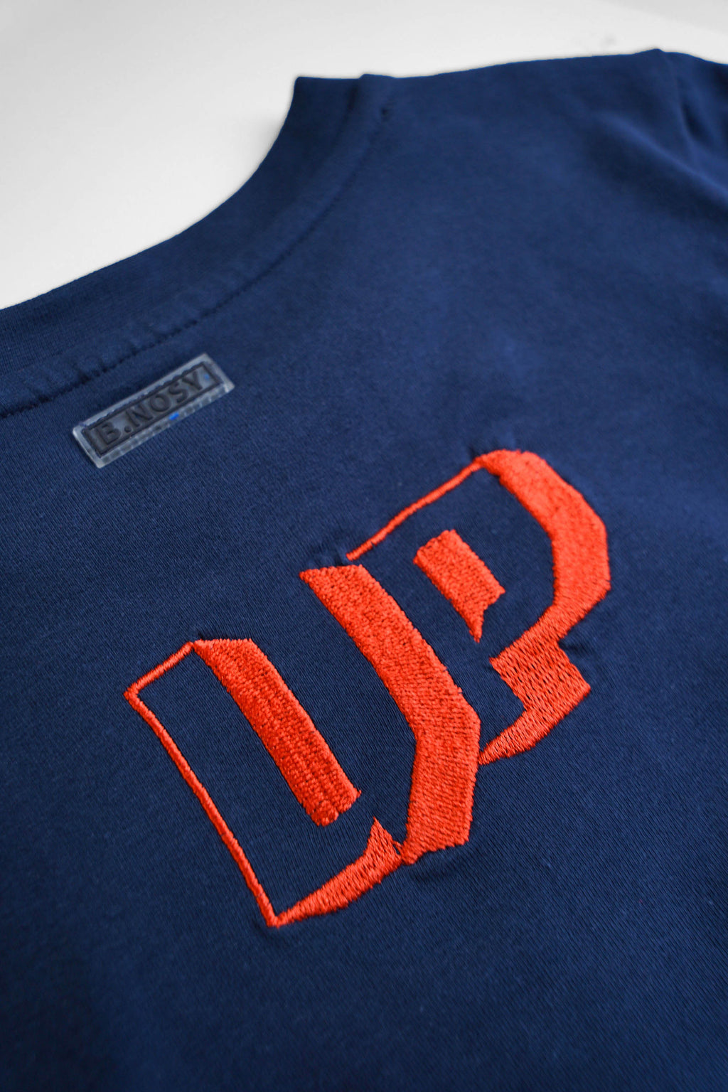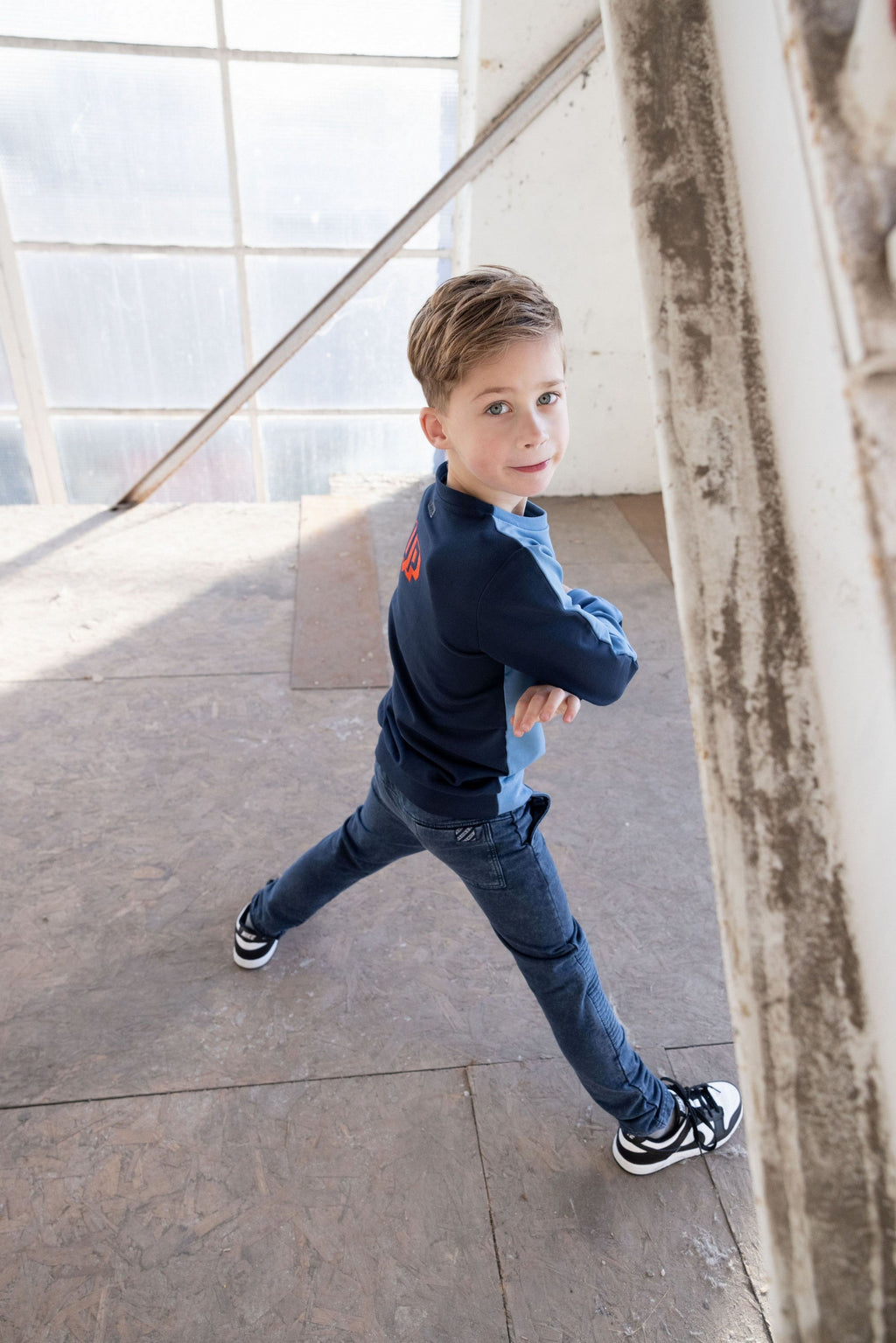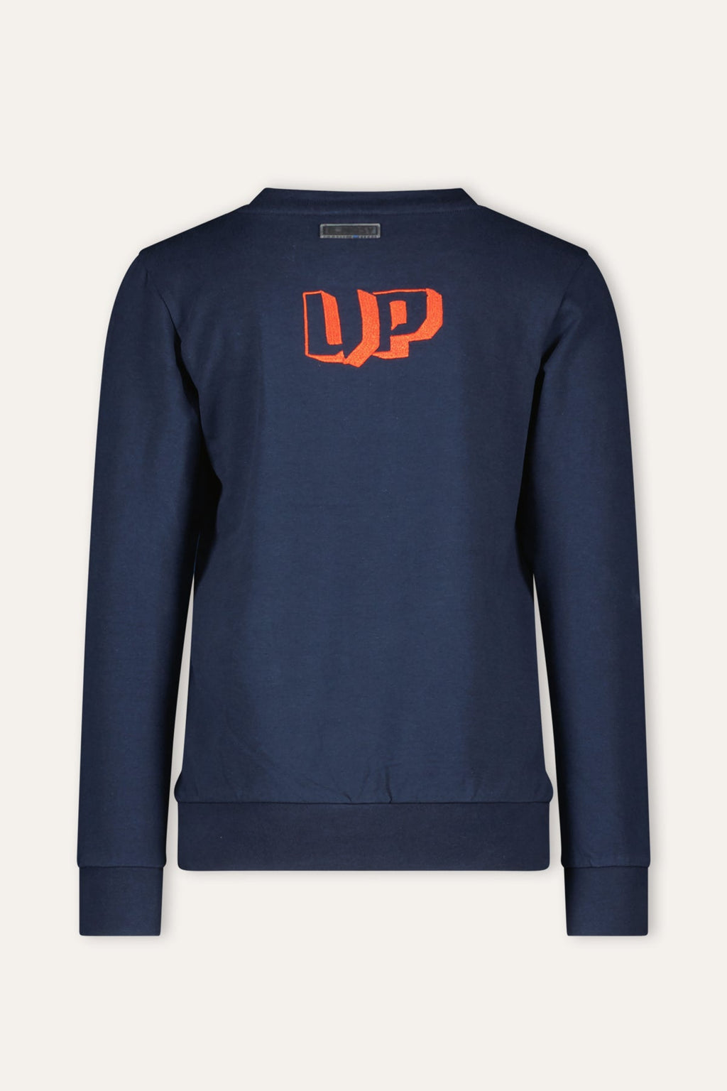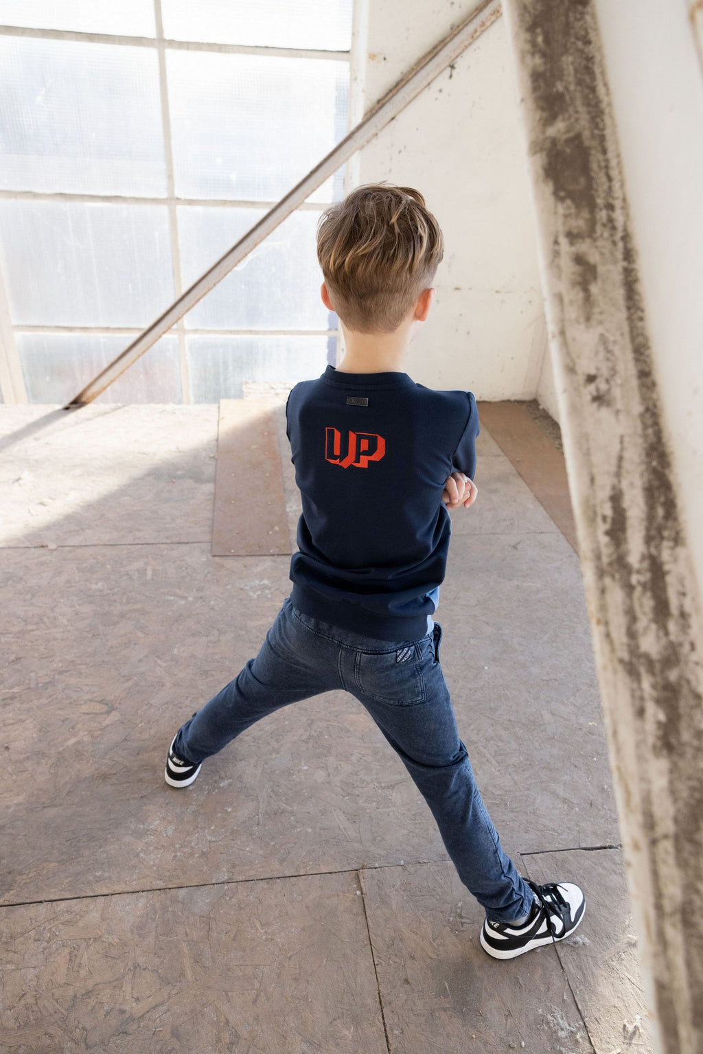 STAND UP! Deze trui is echt uniek! De trui heeft een lichtblauwe kleur aan de voorkant en een donkerblauwe kleur aan de achterkant. Het artwork heeft een toffe rode kleur.