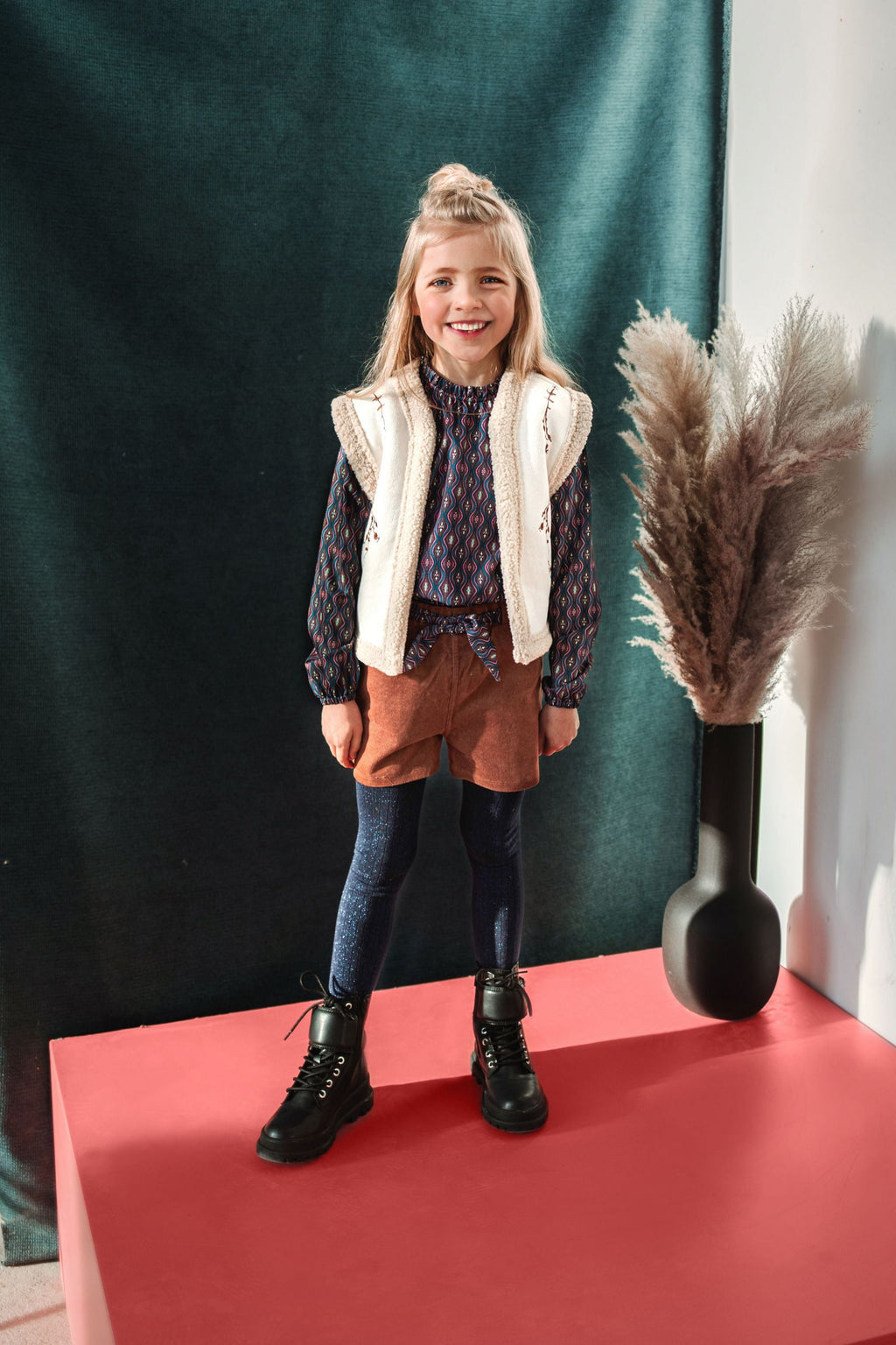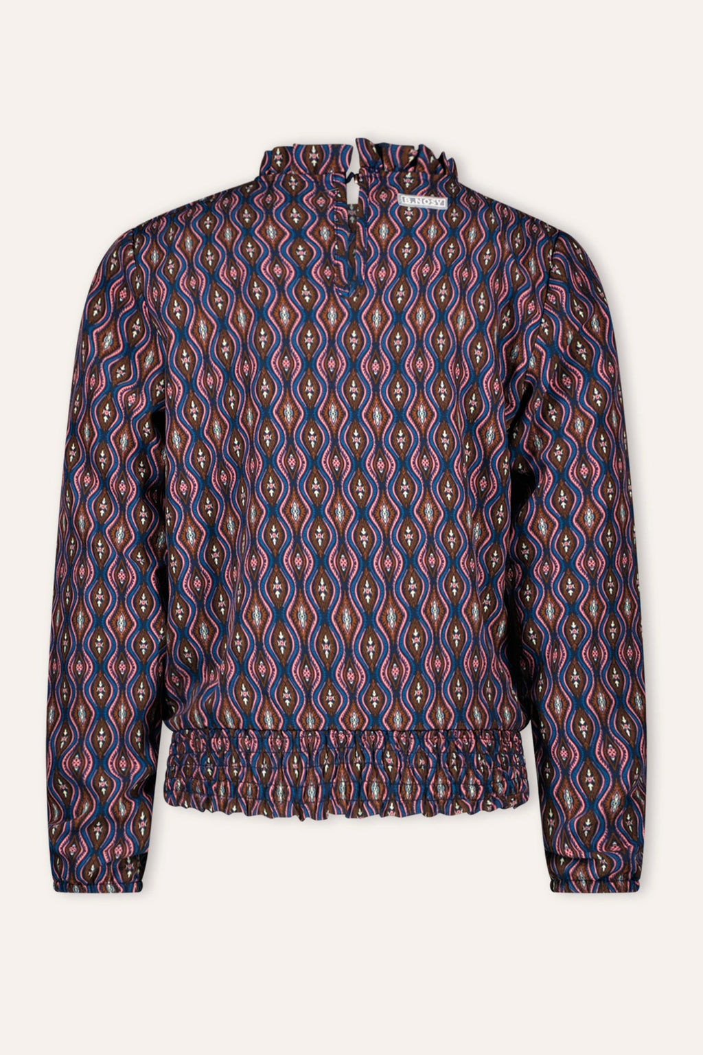 Blouse Venna is echt een snoepje! We zijn dol op dit leuke allover printje in het donkerblauw en roze. Het blouseje heeft een leuk smock-effect aan de onderkant en mooie details aan de mouwen en de kraag. De top valt mooi en geeft een chique touch aan je outfit.
