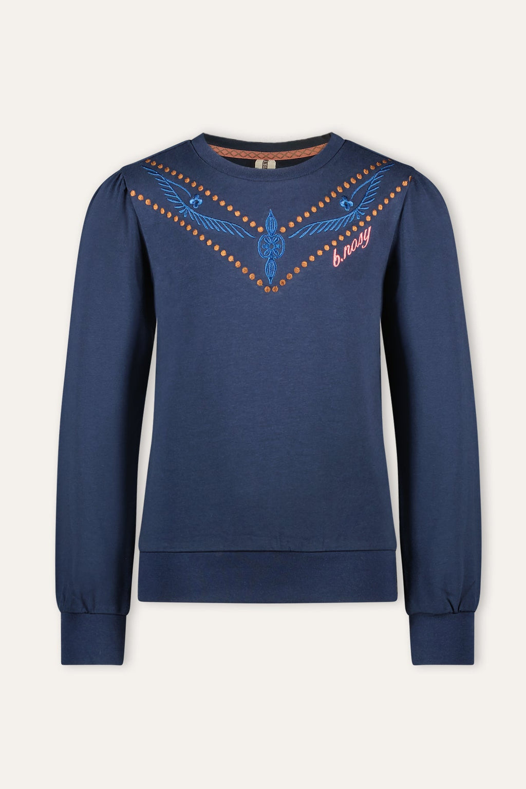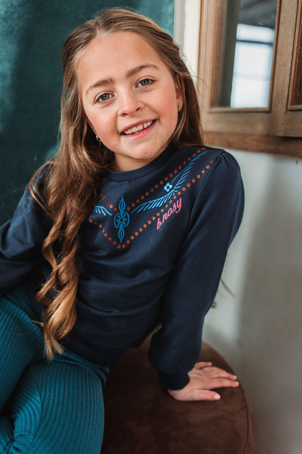 De Vieve trui is gemaakt van een zachte stof en draagt super comfortabel. De trui heeft een uniek en geborduurd artwork op de voorkant in een super gave blauwe klaar. De trui heeft een mooi ribdetail aan de onderkant van de mouwen en de trui. Draag de trui met een toffe denim voor een stoere look.
