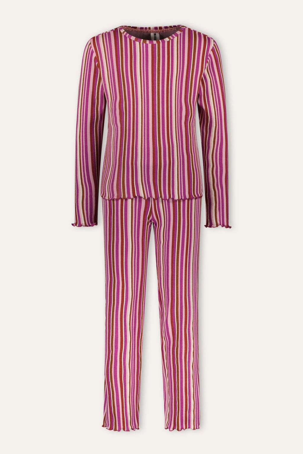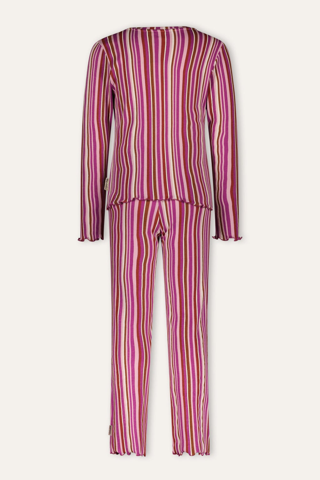 Ook trendy gaan slapen? Met deze B.Nosy Zahra pyjama kan het niet mis gaan. Hij heeft een heerlijk zachte rib stof waardoor hij super comfortabel zit. Daarnaast heeft hij een toffe gestreepte print met verschillende mooie kleuren. Weltrusten! Gemaakt van biologisch katoen.