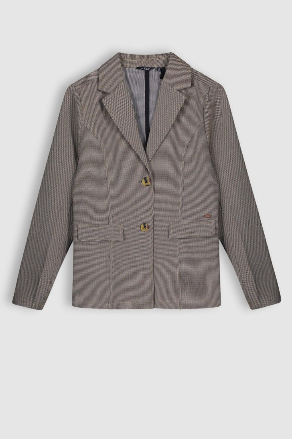 Ontdek de retro vibes van ons bruine pied de poule colbert. Dit ruitpatroon is altijd in stijl, en de bruine kleur geeft het een moderne twist!