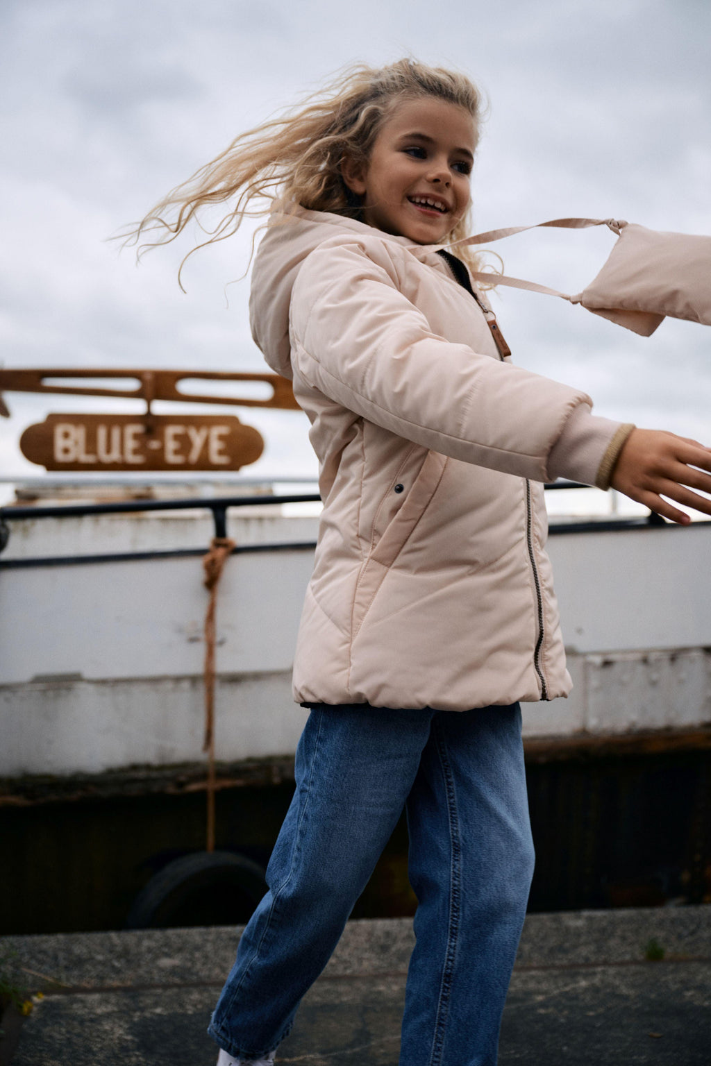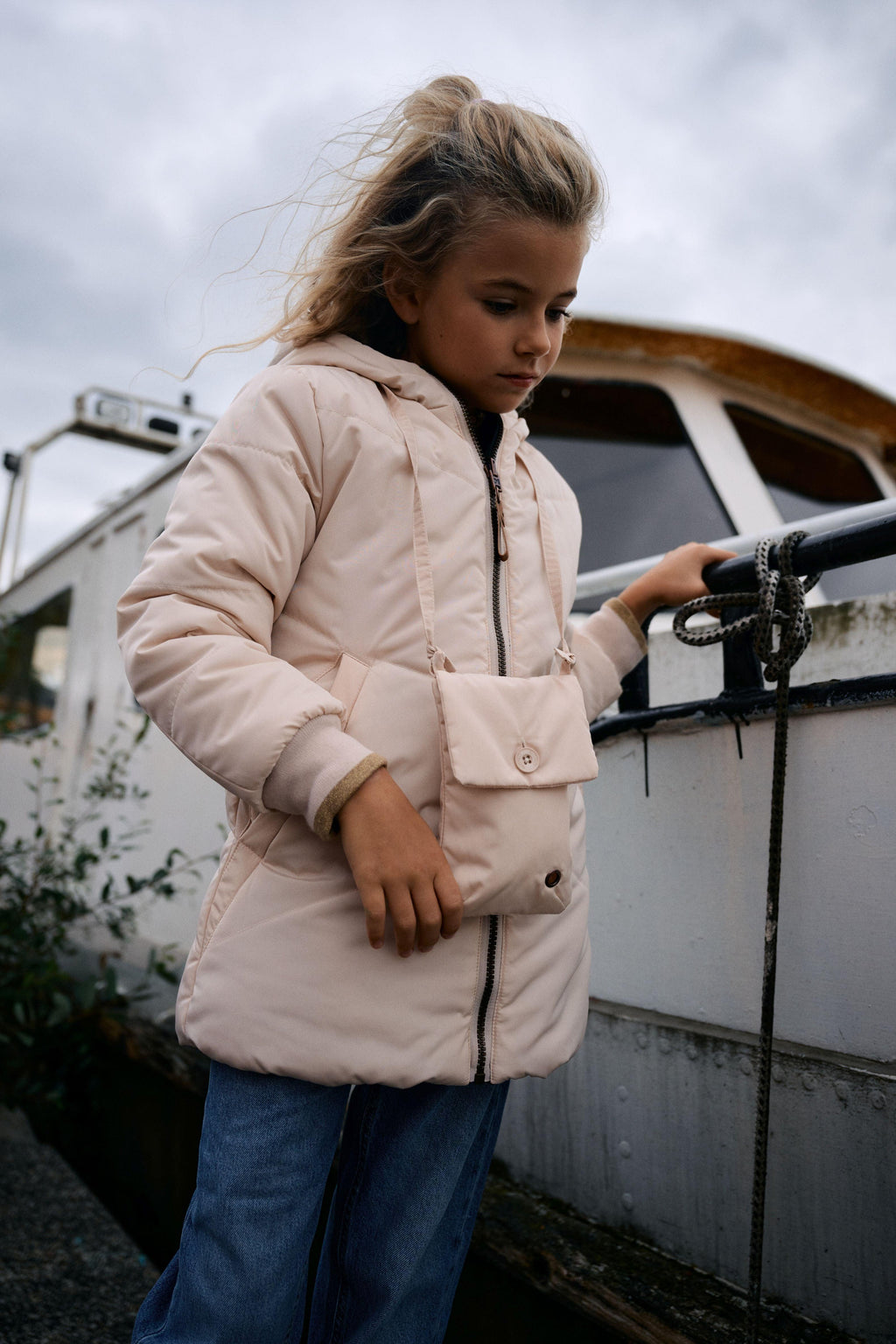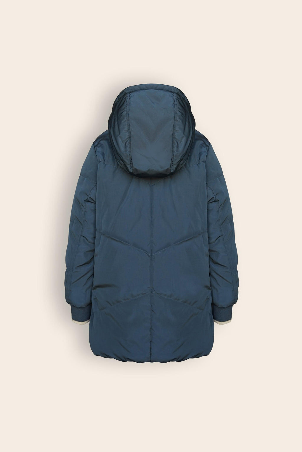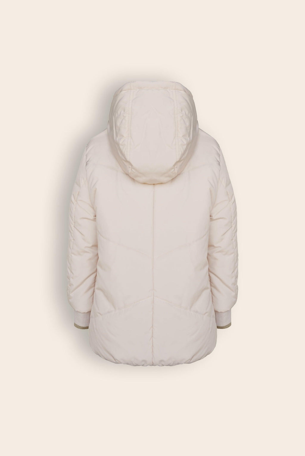 Halflange omkeerbare jas Billa gemaakt van recycled polyester+gerecyclede padding. Het leuke aan deze jas is dat je iedere dag kan kiezen hoe je de deur uitgaat. Wil je vandaag een zwarte jas of een offwhite jas, met deze jas is dit mogelijk en bepaal je dit helemaal zelf. De jas wordt gesloten met een rits, heeft grote steekzakken gevoerd met een zachte warme fleece en drukknopen om de zakken te sluiten. Bijgeleverd krijg je een superleuk en handig tasje voor je mobiel, matching bij je jas.