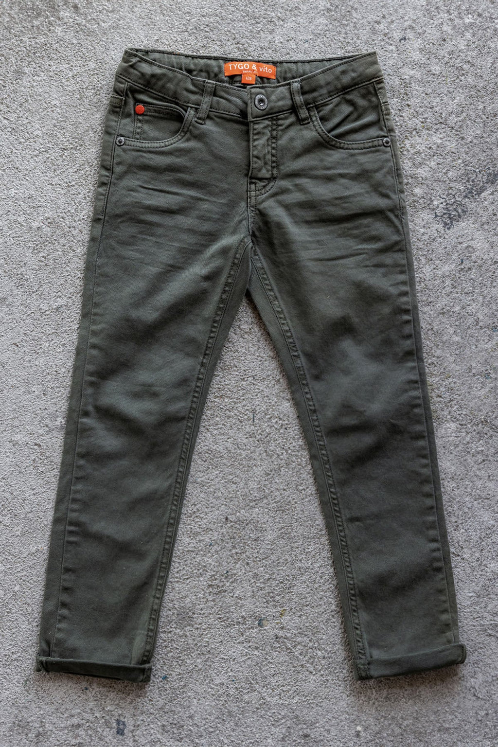 5-Pocket Skinny fit stretch twill van het merk TYGO & vito in non-denim. De broek heeft steekzakken, achterzakken en een verstelbare tailleband. De kleinste maten (92-128) hebben een haak- en ritssluiting en de grootste maten (134-152) hebben een knoop- en ritssluiting. Alle maten hebben 3cm extra lengte. Fijn om nog even in te kunnen groeien of juist voor de extra slanke jongens die daarmee een maat kleiner kunnen passen. De stretch in de stof zorgt voor extra zachtheid en comfort.