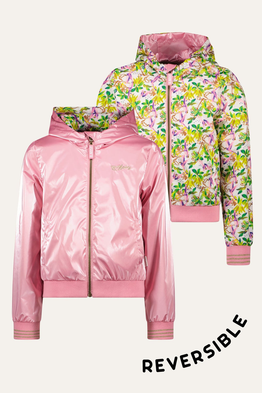 De reversible B.Nosy jas Fayah heeft zowel een effen kant, als een kant met print! De jas is verkrijgbaar in twee kleuren: Navy met een reversible bloemenprint én een roze variant met een toffe jungleprint. De jas is dus niet alleen super leuk, maar ook praktisch! Kies jouw favoriet en switch wanneer jij wilt!