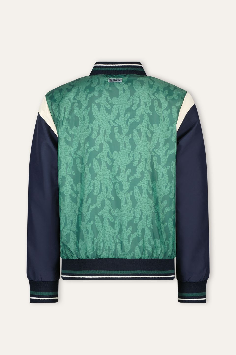 Deze bomber jas is voor alle stoere jongens! De contasteerdende mouwen en het borduur op de borst maken dit item uniek. De lichte padding in de jas zorgt voor de juiste combinatie van comfort en warmte, waardoor het perfect is voor zomerse dagen en avonden.