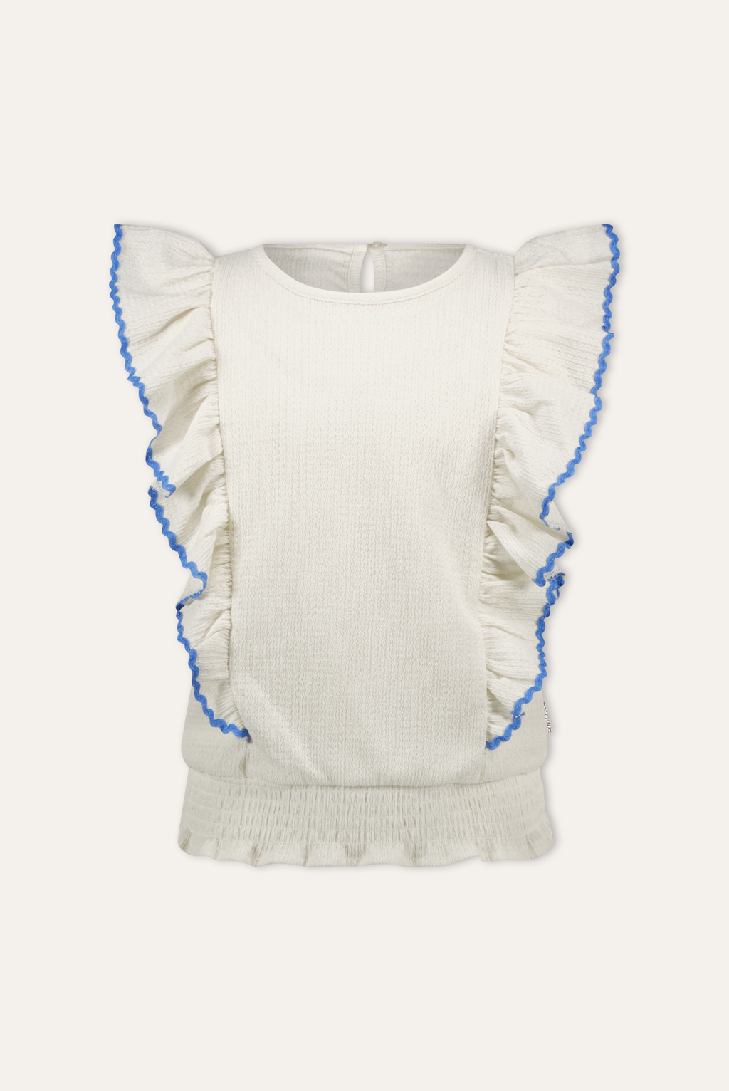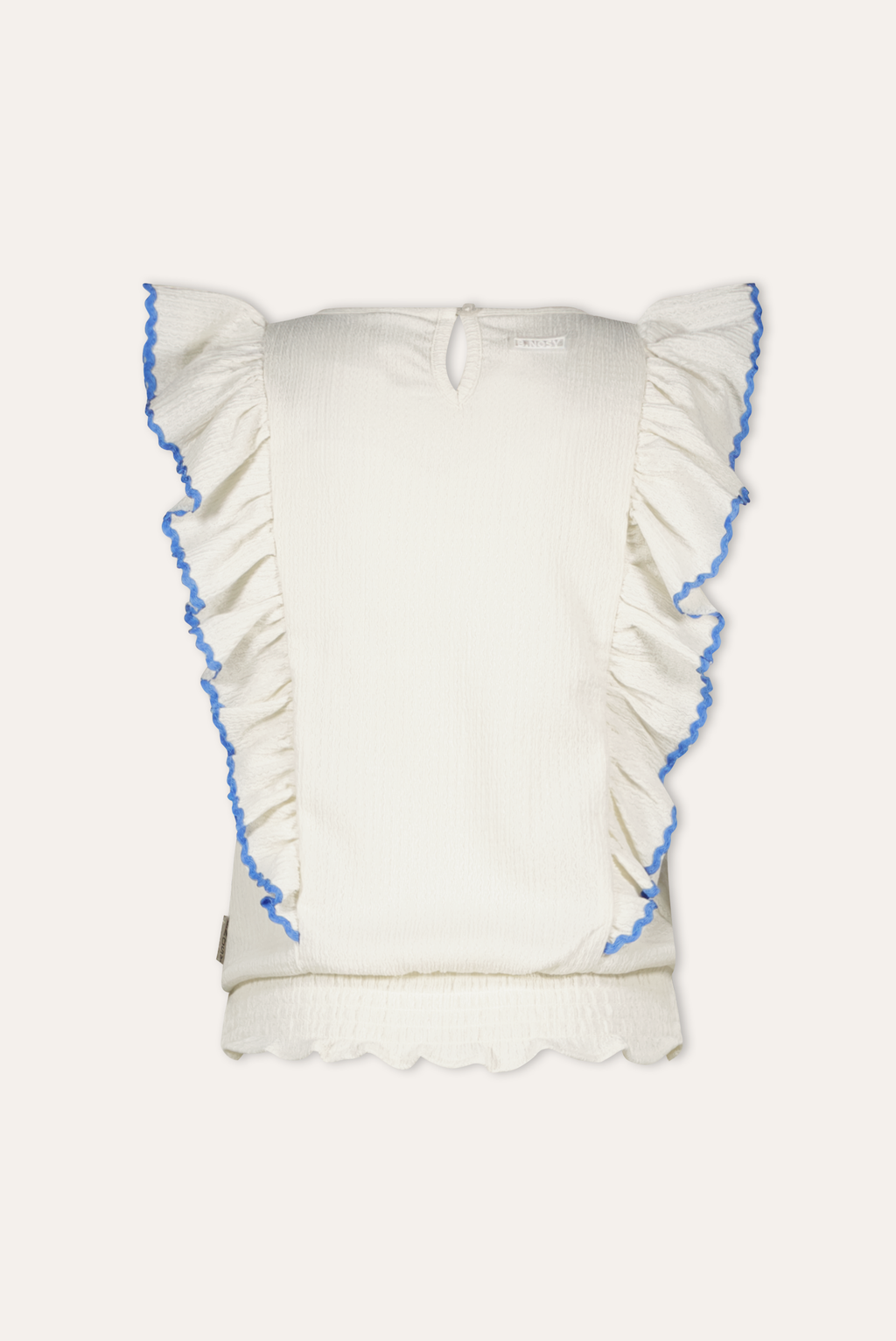 De leukste zomer top om te combineren met eigenlijk alles! Daarnaast is Blouses Pleun ook nog gemaakt van een fijn stretchy materiaal en is gemaakt van recycled polyester. Het leuke blauwe detail op de ruffle geeft de top net dat beetje extra flair.