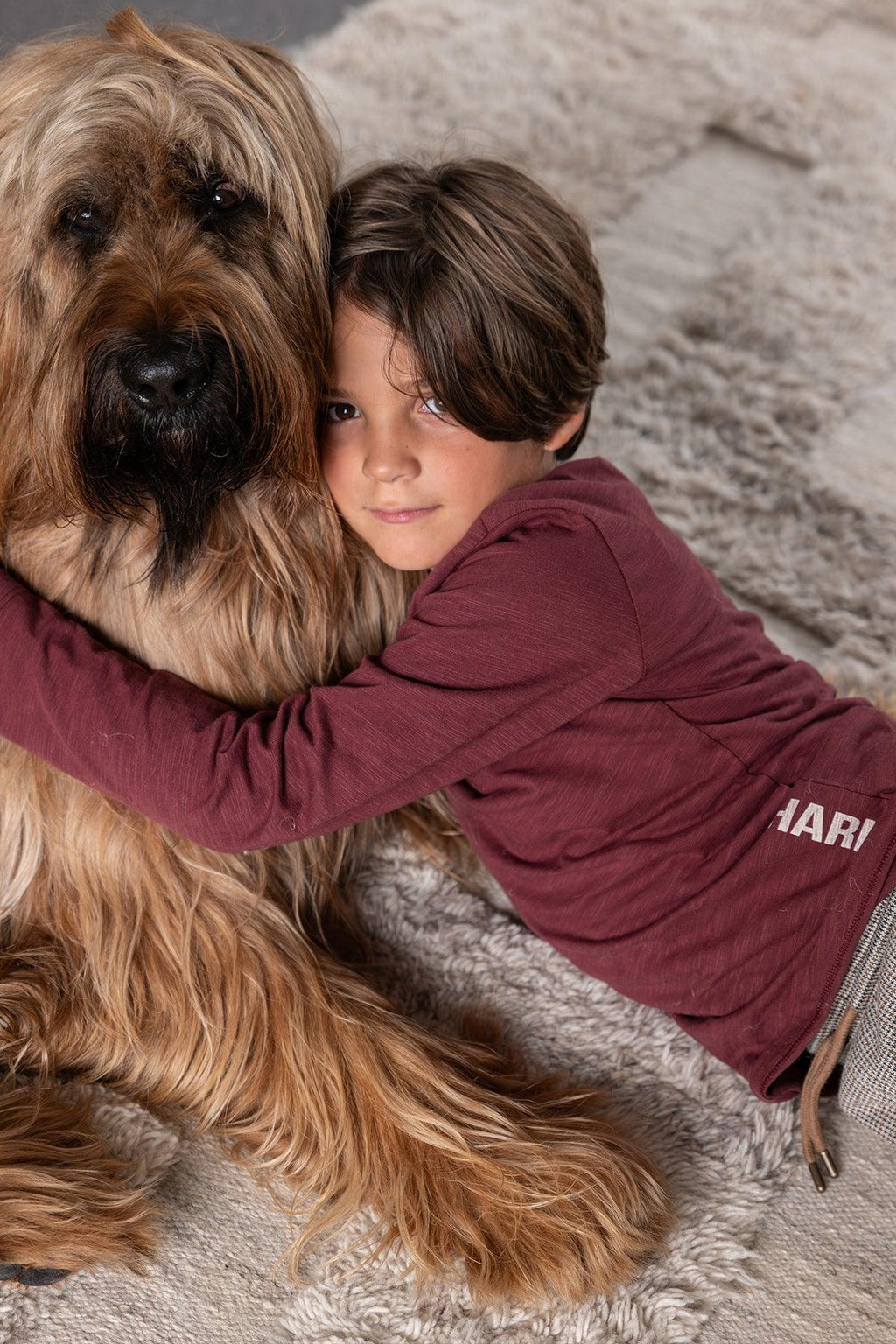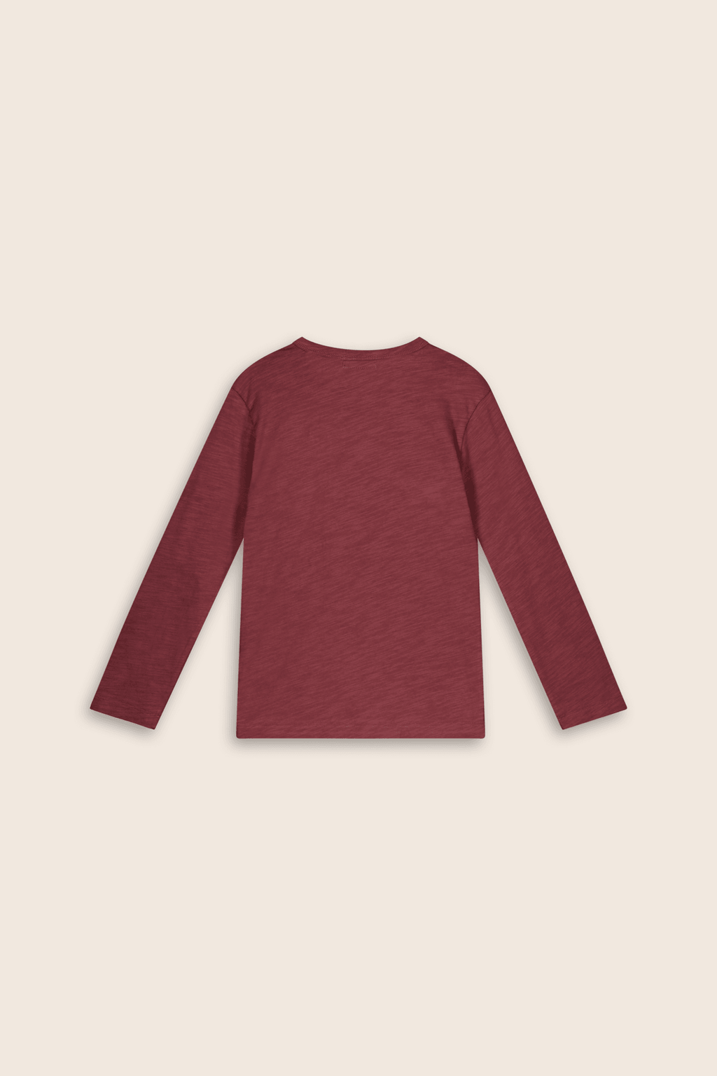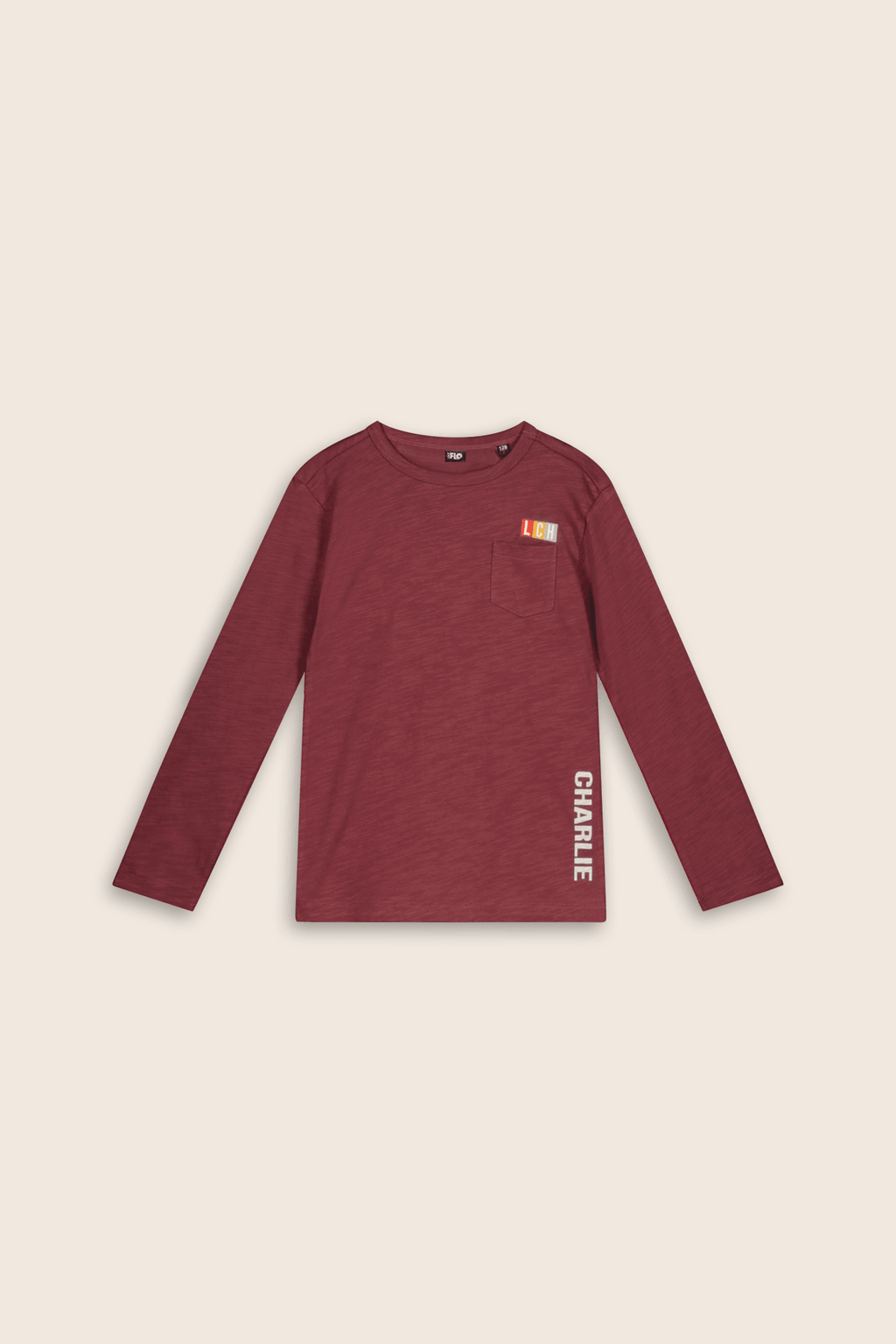 Charlie Ray long sleeve tee SIR CHARLIE. Bordeaux tee van slub jersey met chest pocket en luxe borduur. Het is een wat losser vallend model, geen slimfit.