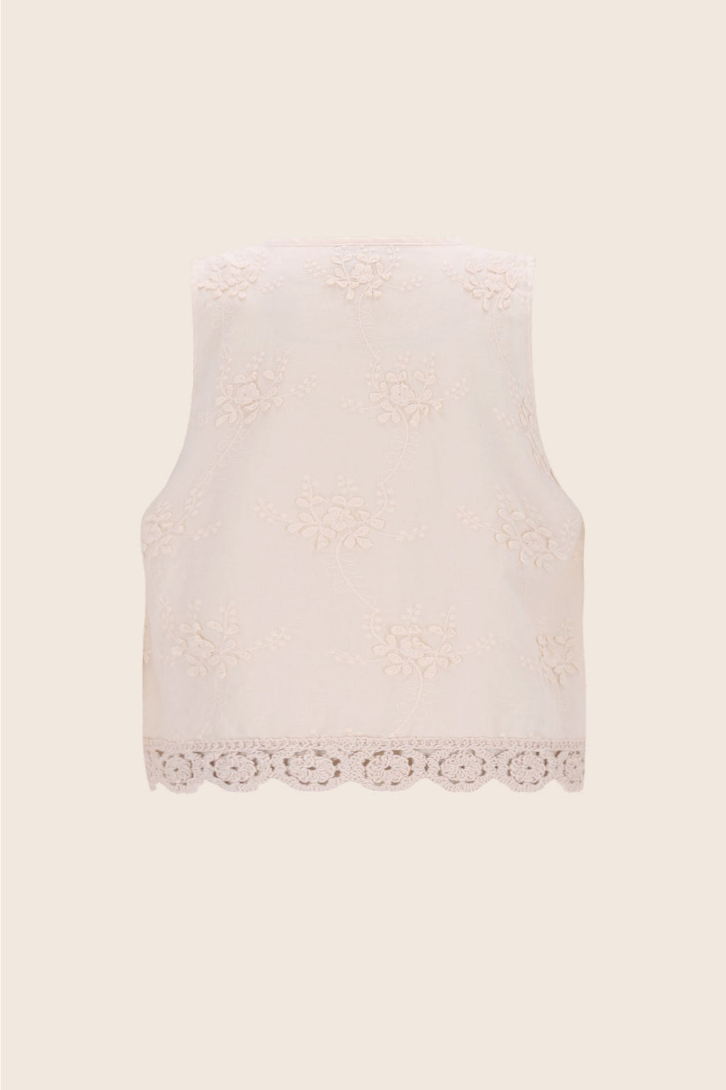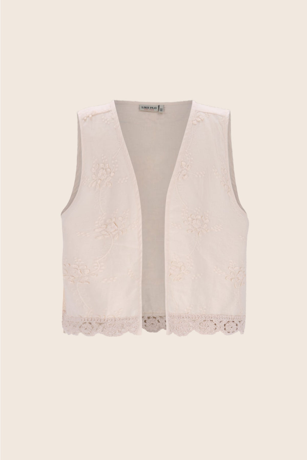 Gilet met 3D bloemetjes. Afgewerkt met crochet bloementape, voor de echte zomerse vibes.