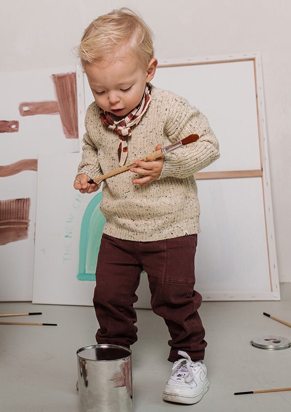 Deze Dane broek heeft het allemaal. Door de stretch en gedeeltelijk elastieke tailleband een extra comfy item. Voorzien van zakken en een rits en knoop sluiting. Rol de broek op voor een extra speels effect! Oneindig te combineren alle items uit chapter Tiny Crafter.