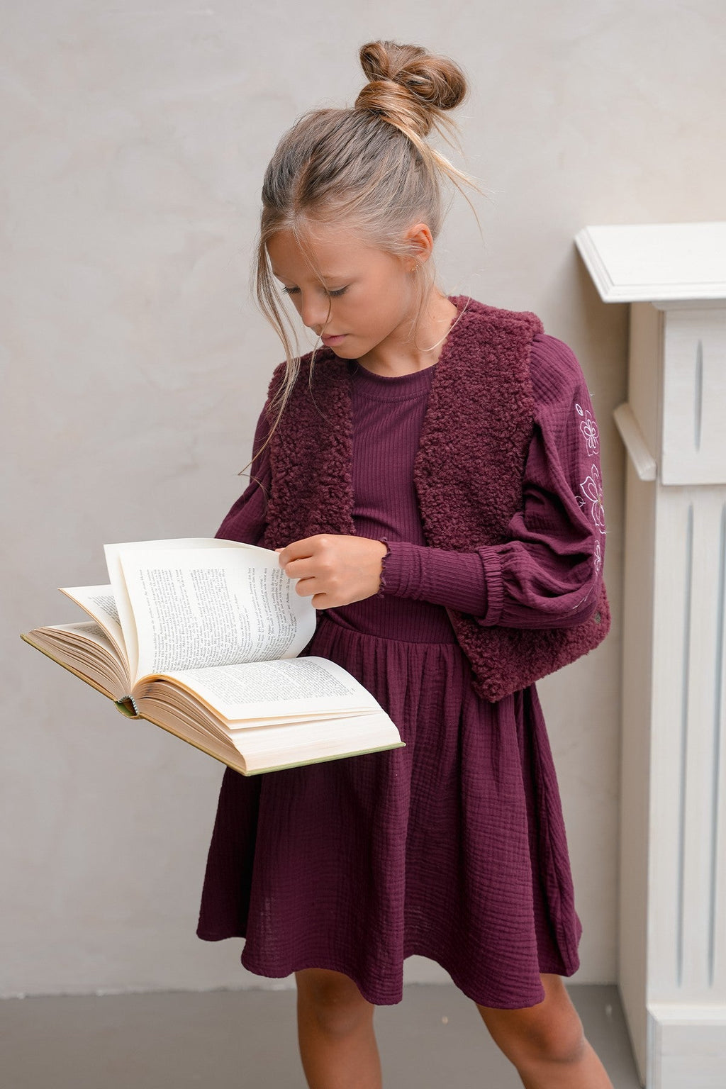 Like Flo Diam gilet in rood is een lief en stijlvol item voor jonge meisjes. Het zachte teddy materiaal houdt je kleintje warm en comfortabel tijdens koelere dagen. Dankzij de haaksluiting krijgt het gilet een speelse en charmante uitstraling. Combineer met de Mae jurk met batikprint voor een modieuze outfit. Een echte must-have voor de garderobe van modebewuste kids. Scan de QR-code en ontdek het verhaal achter dit kledingstuk!