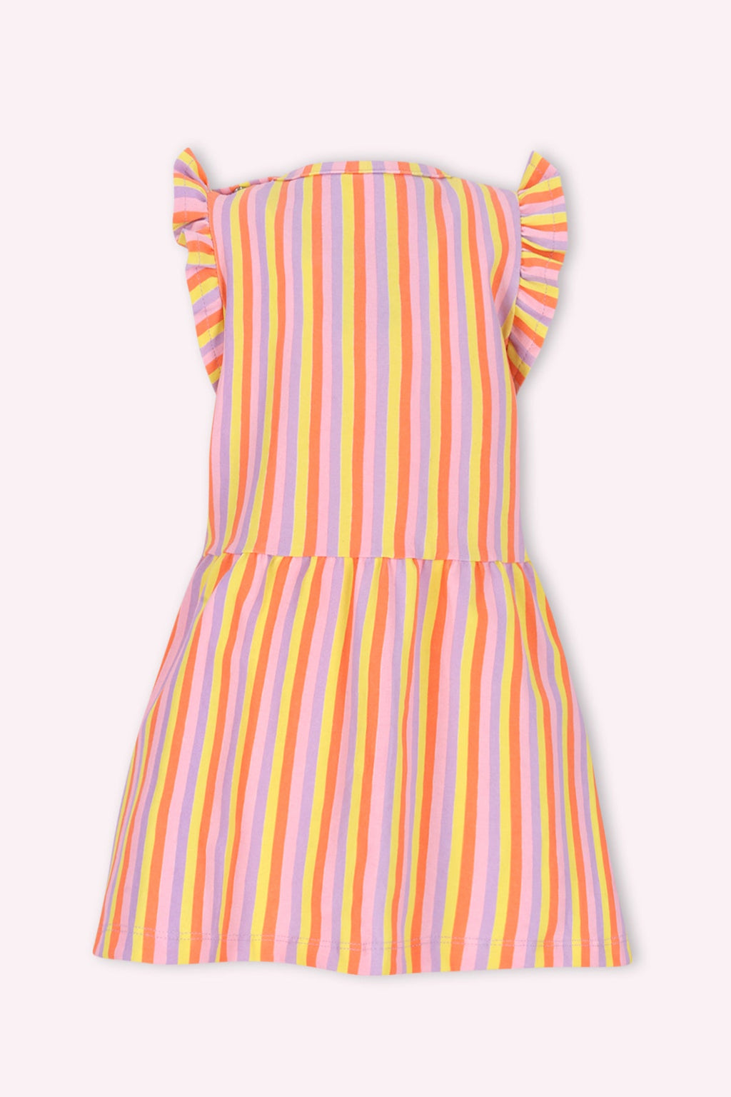 Deze vrolijke jurk van B.Nosy is perfect voor meiden die graag stralen! De speelse streepjesprint en de schattige roezel mouwen maken dit een trendy item. Combineer de jurk met legging Lizzie voor een complete, stoere outfit. Een echte must-have voor elke garderobe!