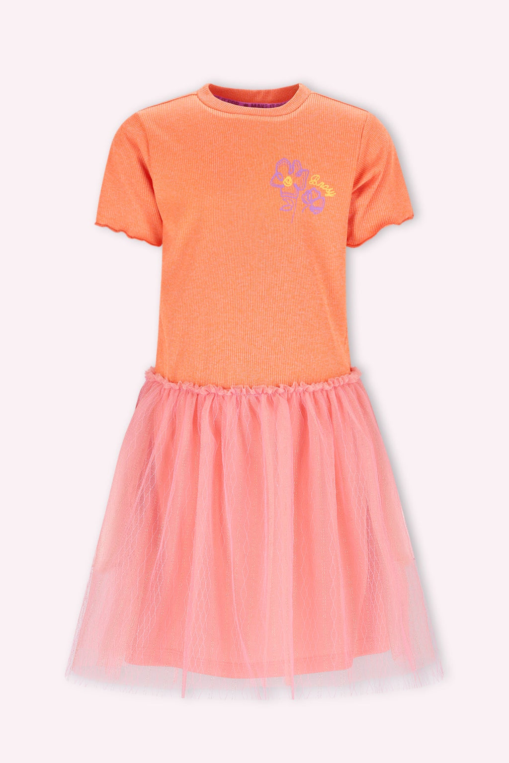 Deze speelse oranje jurk van B.Nosy is een echte kleurknaller! Perfect voor meiden die graag stralen. De jurk heeft een comfortabele rib top en een subtiel borduurtje op de borst. Met de bijgeleverde tule tok maak je de outfit helemaal af. Een ideale toffe outfit die je makkelijk kunt mixen!