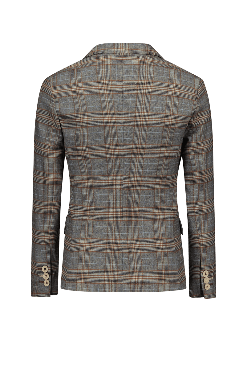Red+Blazer made of grey/brown check print. The blazer has minimal shoulder pads and a button closure. Match with one of our Blousess for the perfect outfit!