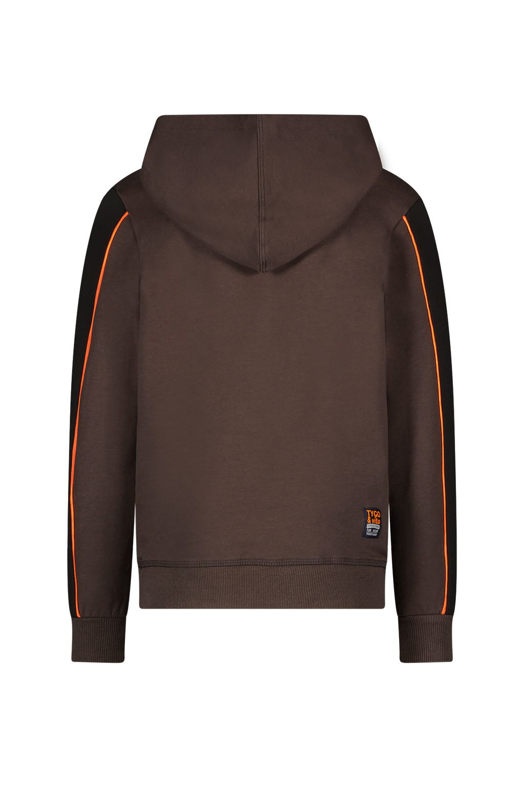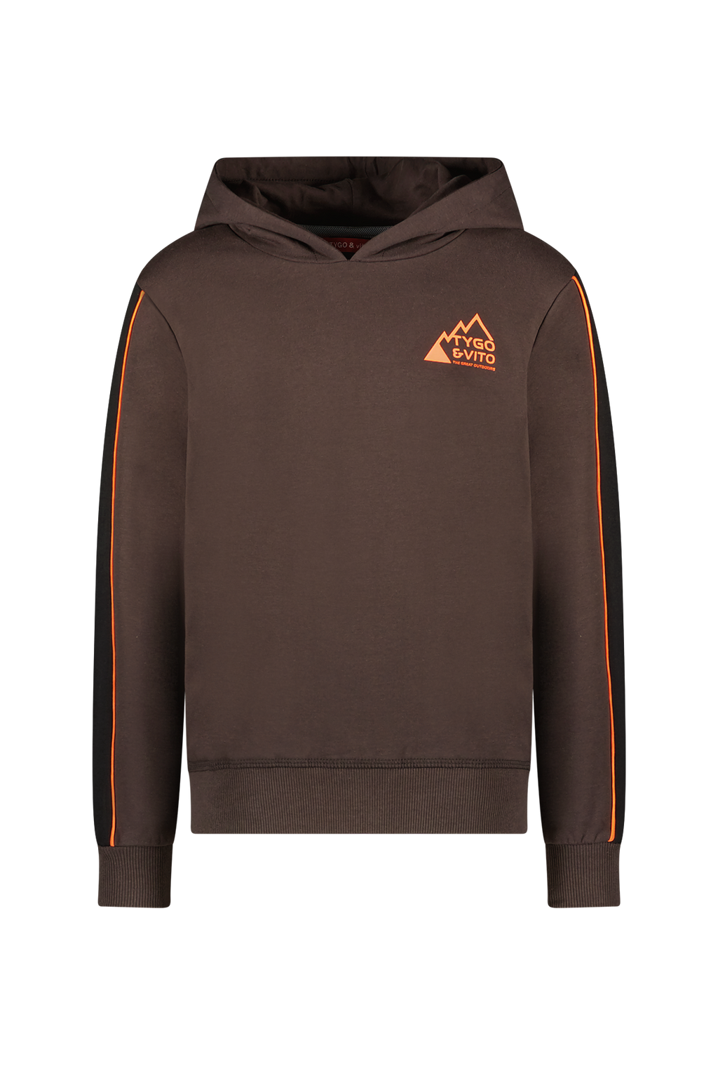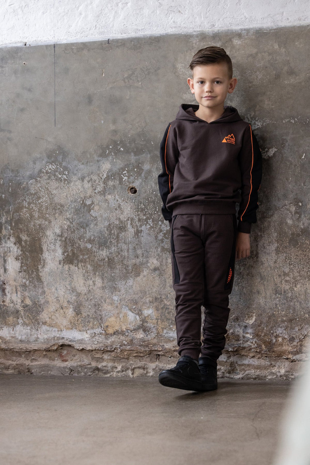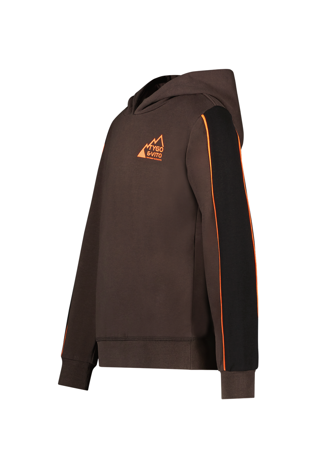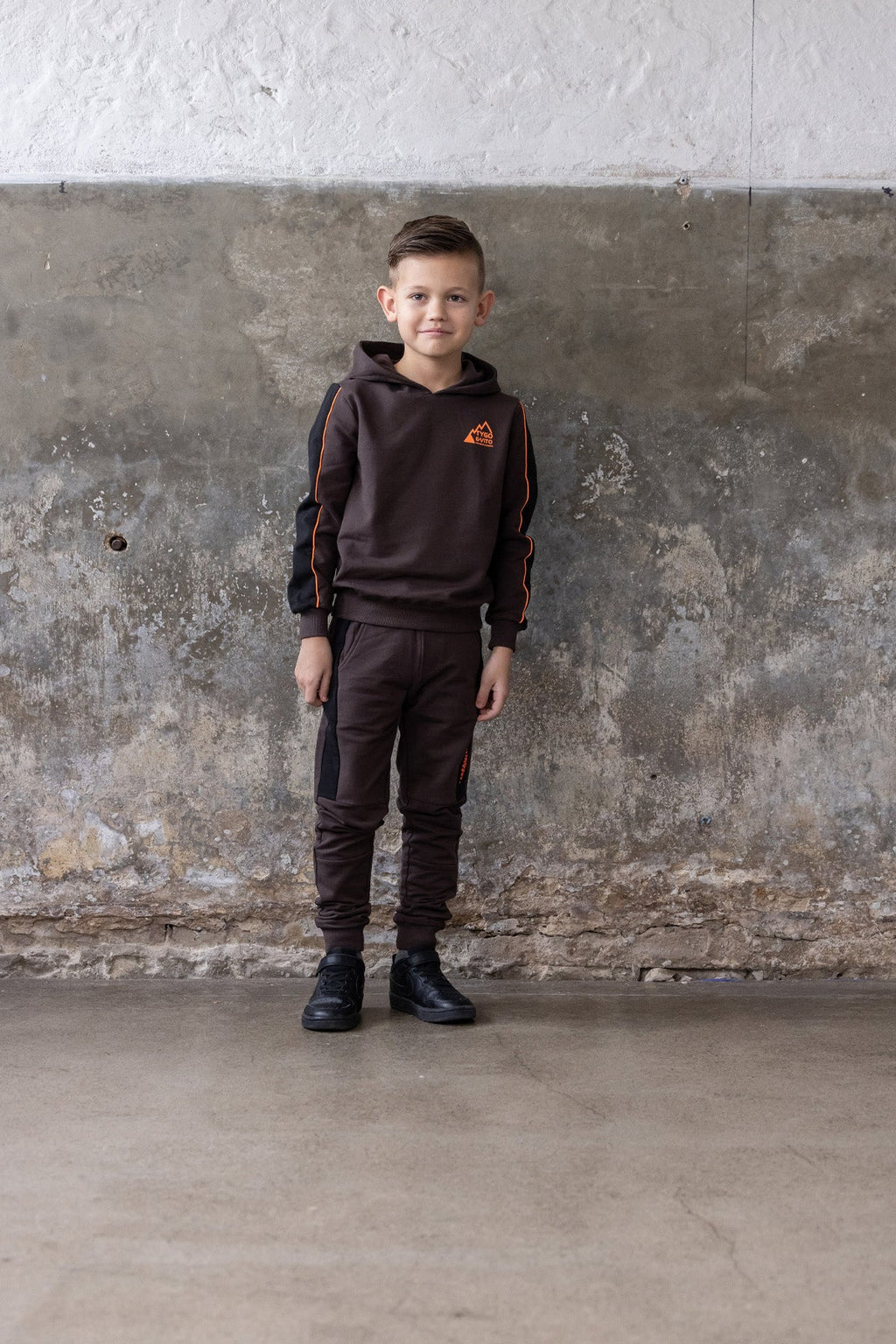 Stoere bruine hoodie met contrast zwarte streep in de mouw en coole oranje details. De trui voelt heerlijk zacht en comfortabel. Wil je graag een heel joggingpak? Dat kan! Combineer sweater Harm op joggingbroek Pax. Als je voor deze sweater kiest, steun je het "Cotton made in Africa" initiatief. TYGO & vito FOR A BETTER NEXTERDAY. Verkrijgbaar in de maten 92-152.