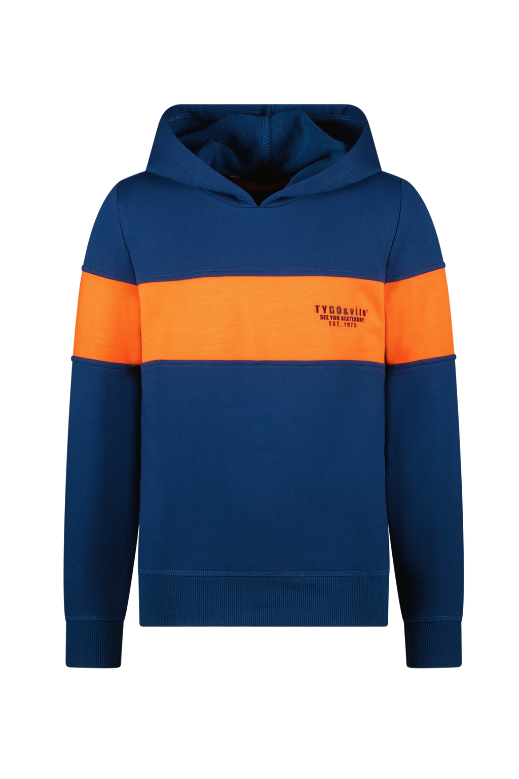 Stoere TYGO & vito boys colorblock hoodie in blauw met neon oranje. Deze zachte sweater is makkelijk te combineren met alle TYGO & vito jeans. Verkrijgbaar in de maten 92-152. SEE YOU NEXTERDAY.