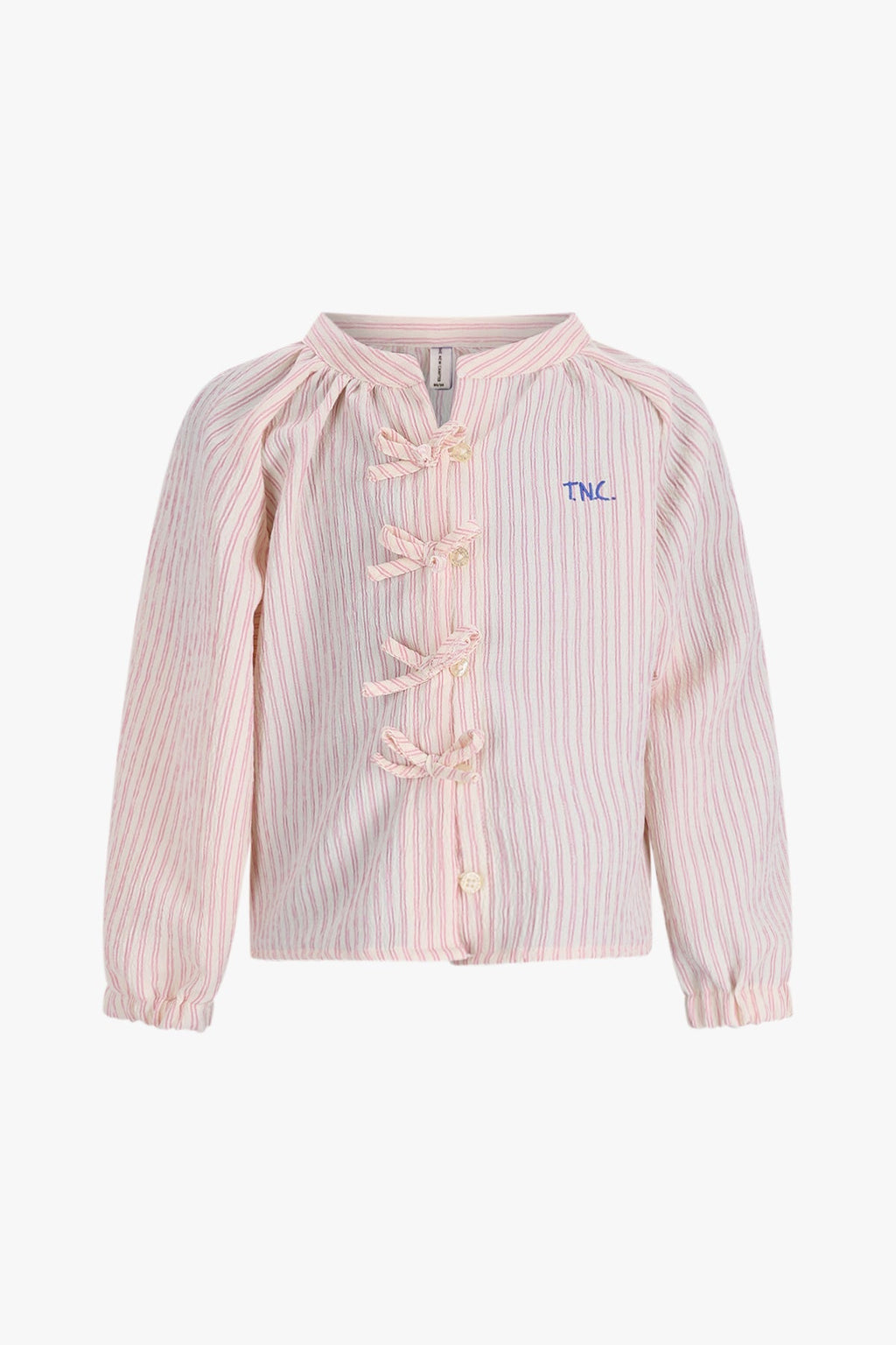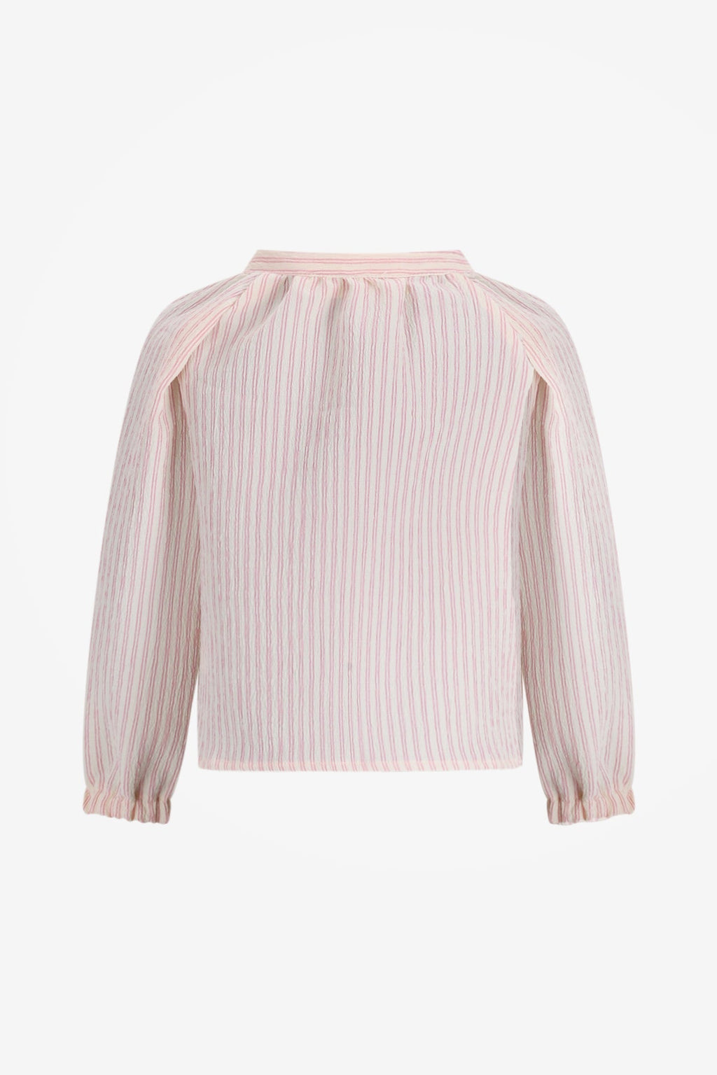 Blouse Izzy brengt meteen een glimlach met zich mee. De zachte wit-roze streepjes geven de blouse een frisse, zomerse look, terwijl de speelse sluiting aan de voorkant zorgt voor net dat beetje extra charme. Licht, luchtig en perfect om in te bewegen – van een gewone dag tot een speciaal moment.