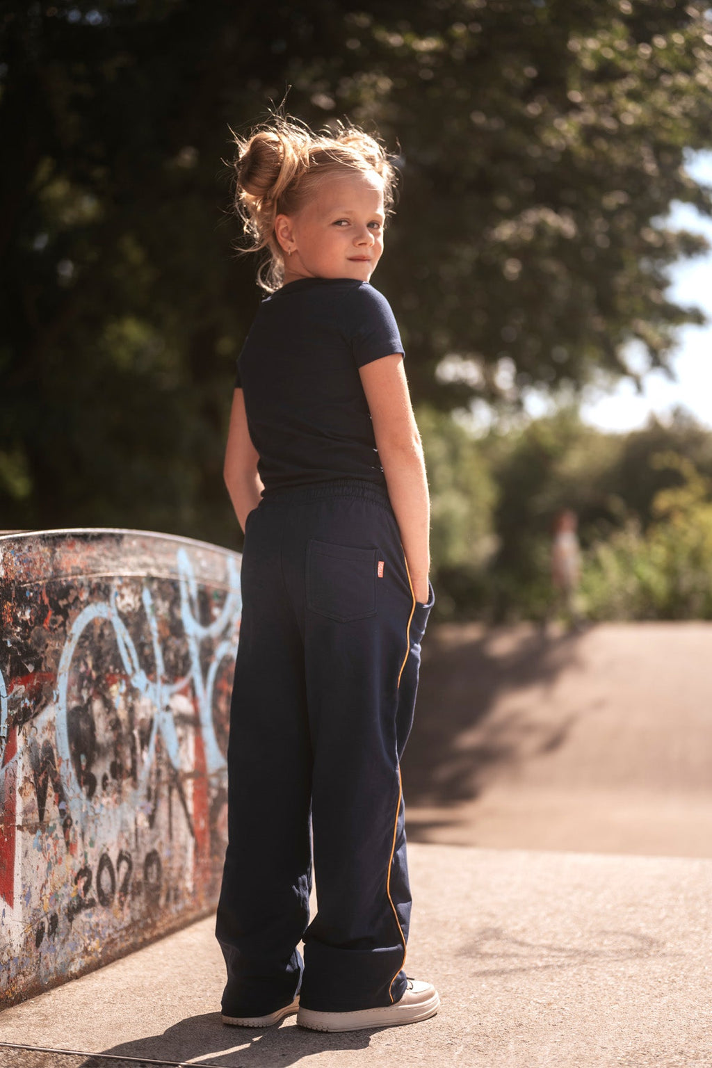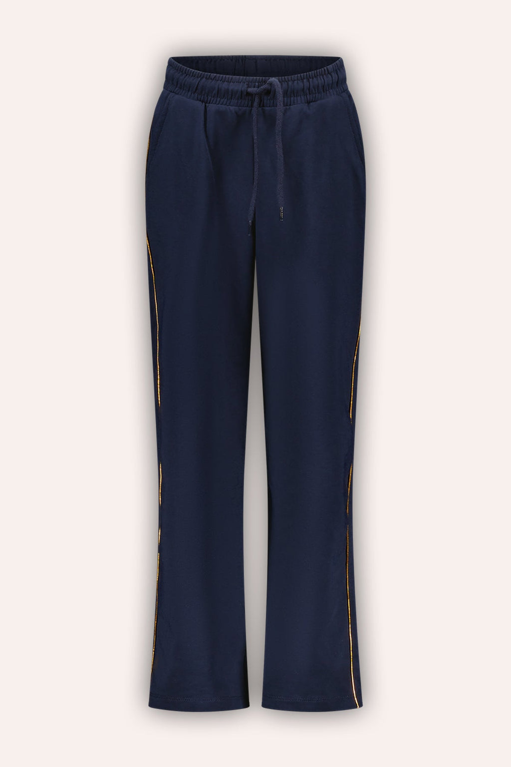A touch of Gold! De jogpants 'Pip' is een comfortabele broek met een verstelbaar trekkoord rond de taille. Het rechte model zorgt voor draagcomfort, en langs de zijkanten loopt een gouden streep die een sierlijk effect geeft. Gemaakt van biologisch katoen FOR A BETTER NEXTERDAY. Verkrijgbaar in de maten 92-152. Wist je trouwens dat je door het scannen van de QR code de reis kunt zien die dit kledingstuk al heeft afgelegd?