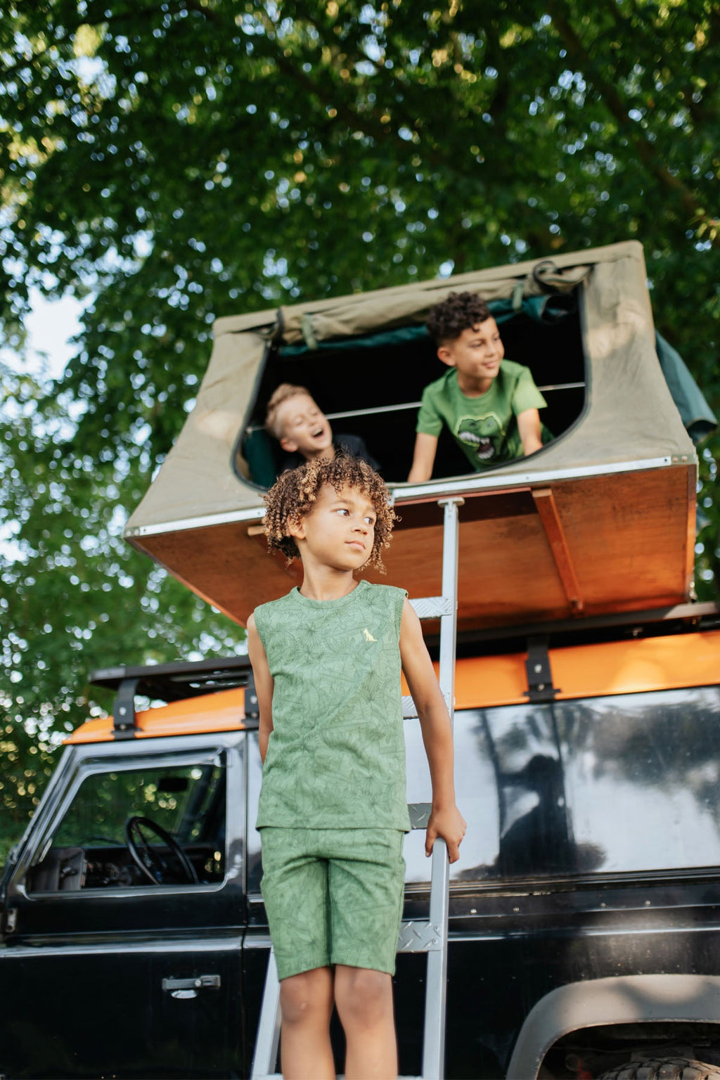 Stijlvolle jogshort 'Thomas' in groen met een tropische print, voorzien van een verstelbare tailleband. Deze zomerse short van TYGO & vito biedt comfort en trendy flair. Draag het moeiteloos en geniet van een modieuze uitstraling tijdens warme dagen. Een levendige keuze die bijdraagt aan FOR A BETTER NEXTERDAY. Wist je trouwens dat je door het scannen van de QR-code de reis kunt zien die dit kledingstuk al heeft afgelegd? Verkrijgbaar in de maten 92-152.