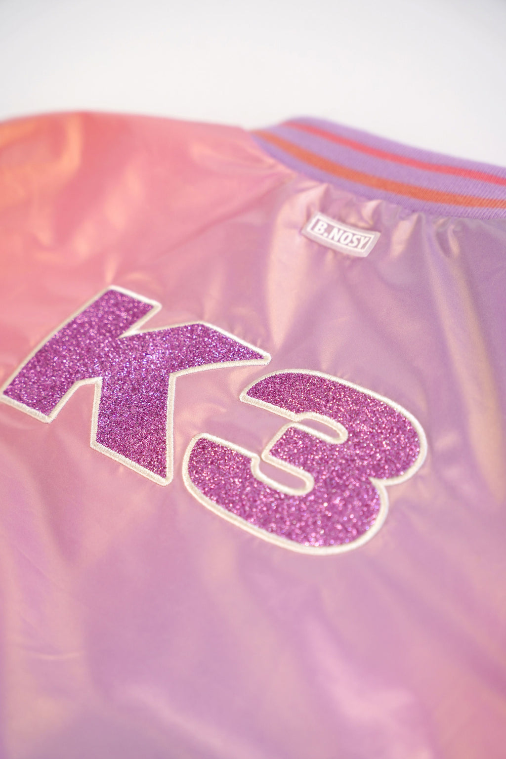 Wat een gaaf effect heeft deze mooie gradient K3 jas. Uitgevoerd in jouw favoriete kleuren, roze en paars. Een super leuke gevoerde jas gemaakt van gerecycled polyester. Deze jas hoort bij de B.Nosy x K3 collectie