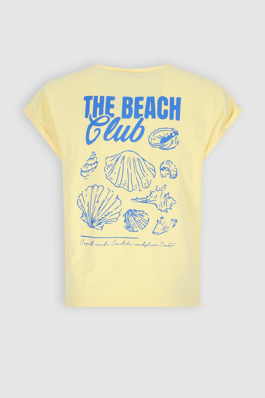 Dit trendy gele T-shirt van Nobell' is een must-have voor tienermeiden. Het shirt heeft een relaxte pasvorm, aangeknipte mouwen en een stoere, grote Beach print op de rug die direct de aandacht trekt. Gemaakt van zacht materiaal (95% katoen, 5% elastaan) zorgt het voor optimaal draagcomfort. Ideaal voor een casual, stijlvolle look.