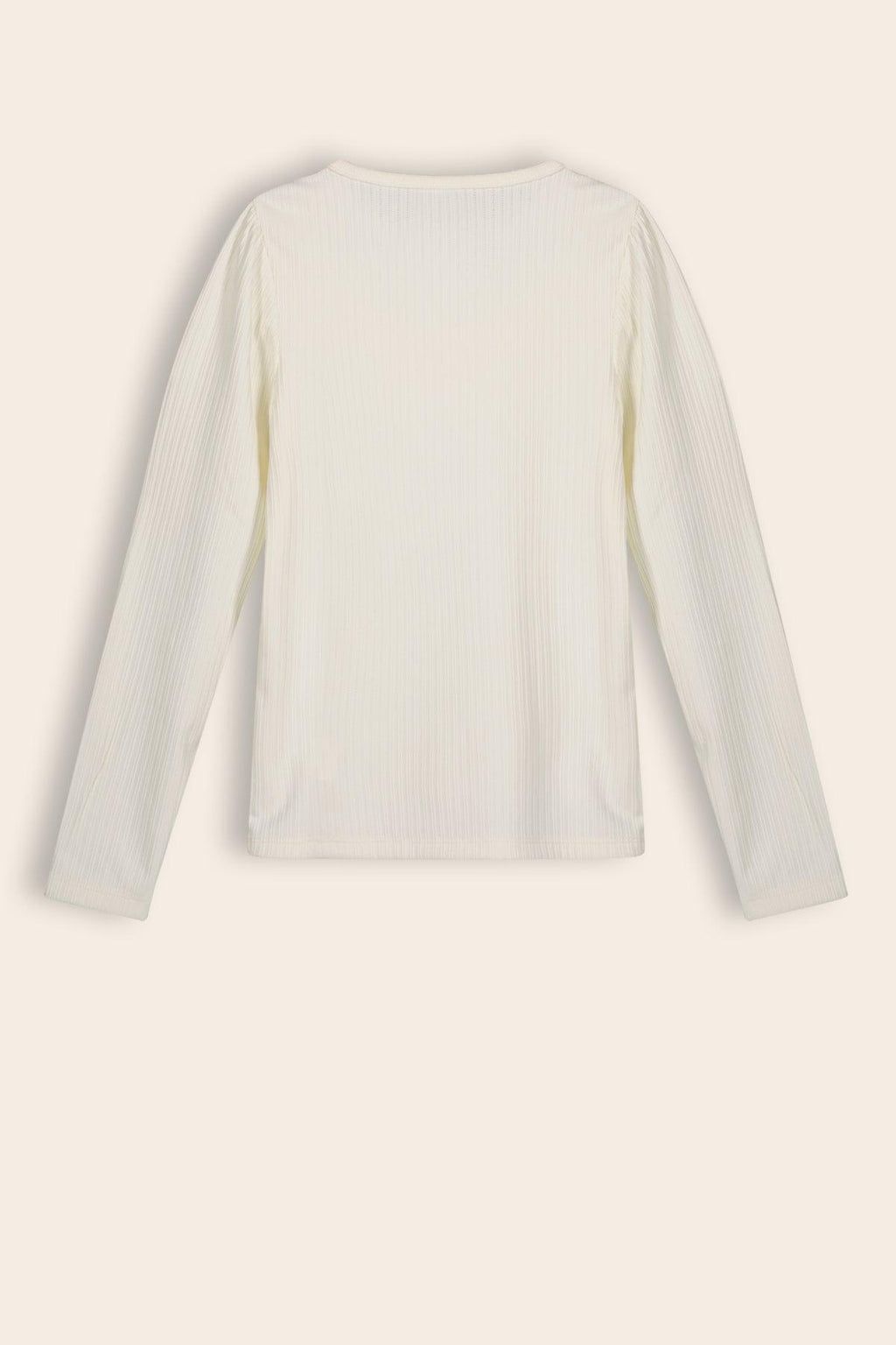 Verfijnde pointelle rib jersey top met ruche op de borst gemaakt van broidery anglaise. Offwhite combineert perfect met alles uit deze levering.