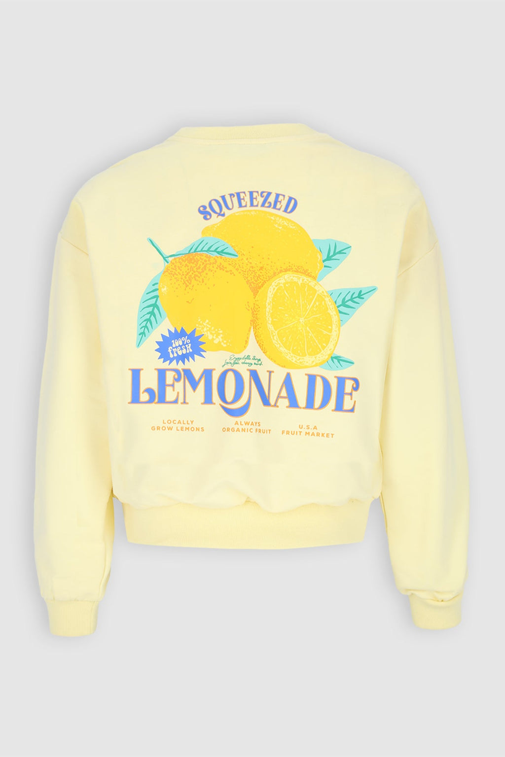 Frisse kleur sweater met grote citroenen print op de rug: Lemonade print