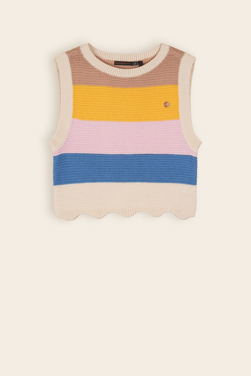 So cute! Met een gave broek eronder, ga jij helemaal sportief en stijlvol de dag door. Deze vrolijke, cropped top krijgt een sierlijk element door de golvende zoom.
