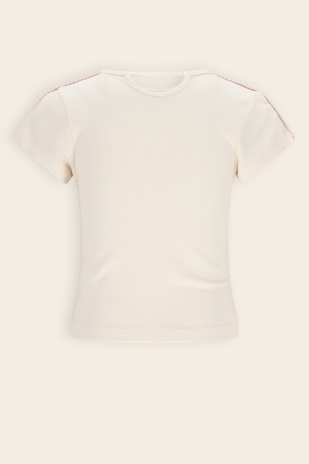 Dit mooie Kris Rib Tshirt in ivoor is een onmisbaar stuk voor jongedames die van stijl houden! Het shirt is gemaakt van zachte materialen met een leuke geborduurde strik, waardoor het een speelse en unieke flair heeft. Ideaal voor dagelijks gebruik en perfect voor combinaties met trendy rokken of broeken!• Gemaakt van 96% ecovero viscose en 4% elastaan