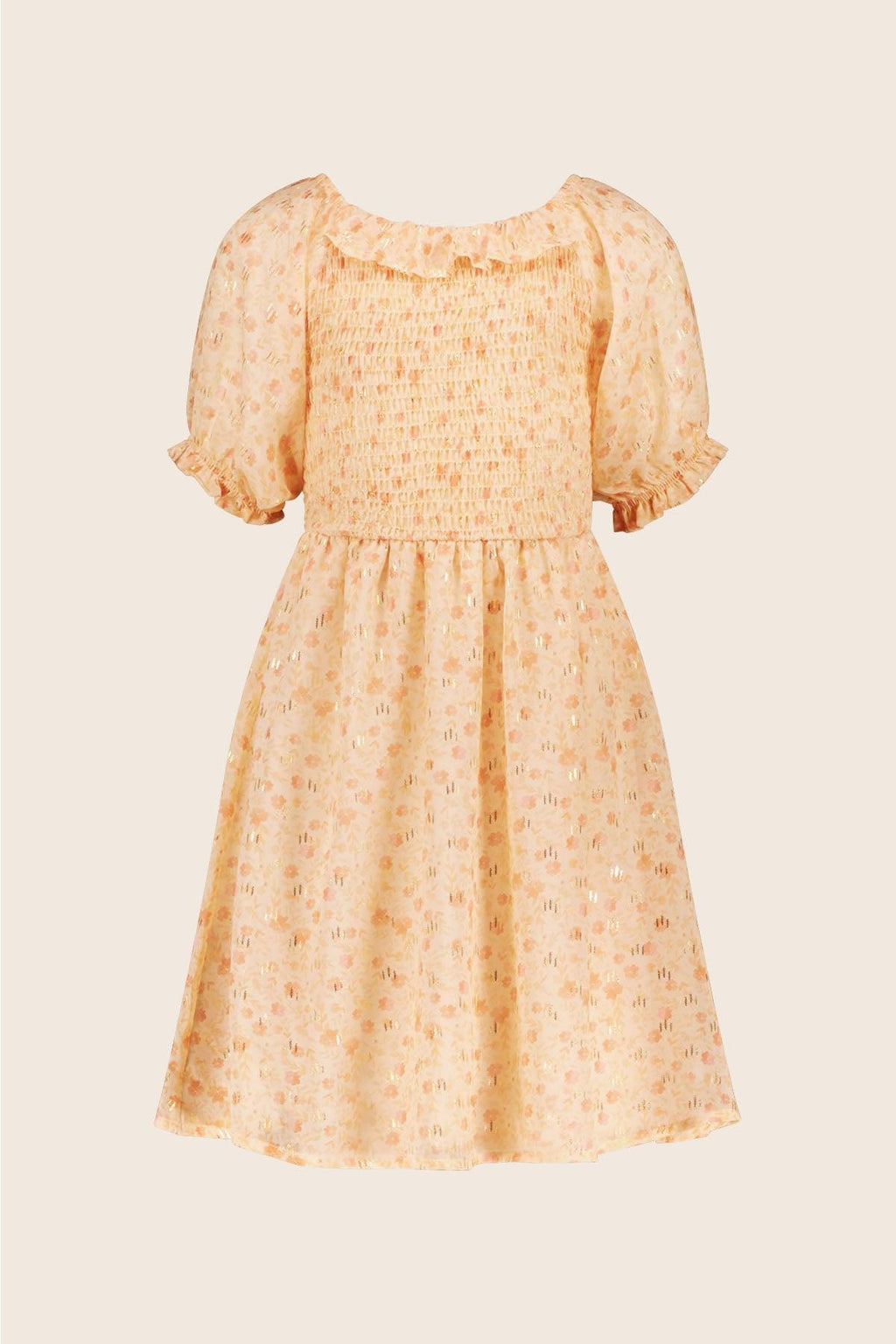 Jurk MOULIN is gemaakt van een prachtige gebloemde chiffon. Met een gesmockt bovenstuk en puffy mouwen een heerlijk zomerse jurk. En als het nog iets te koud is combineer je hem met ons veren gilet DARCY in kleur Brique.