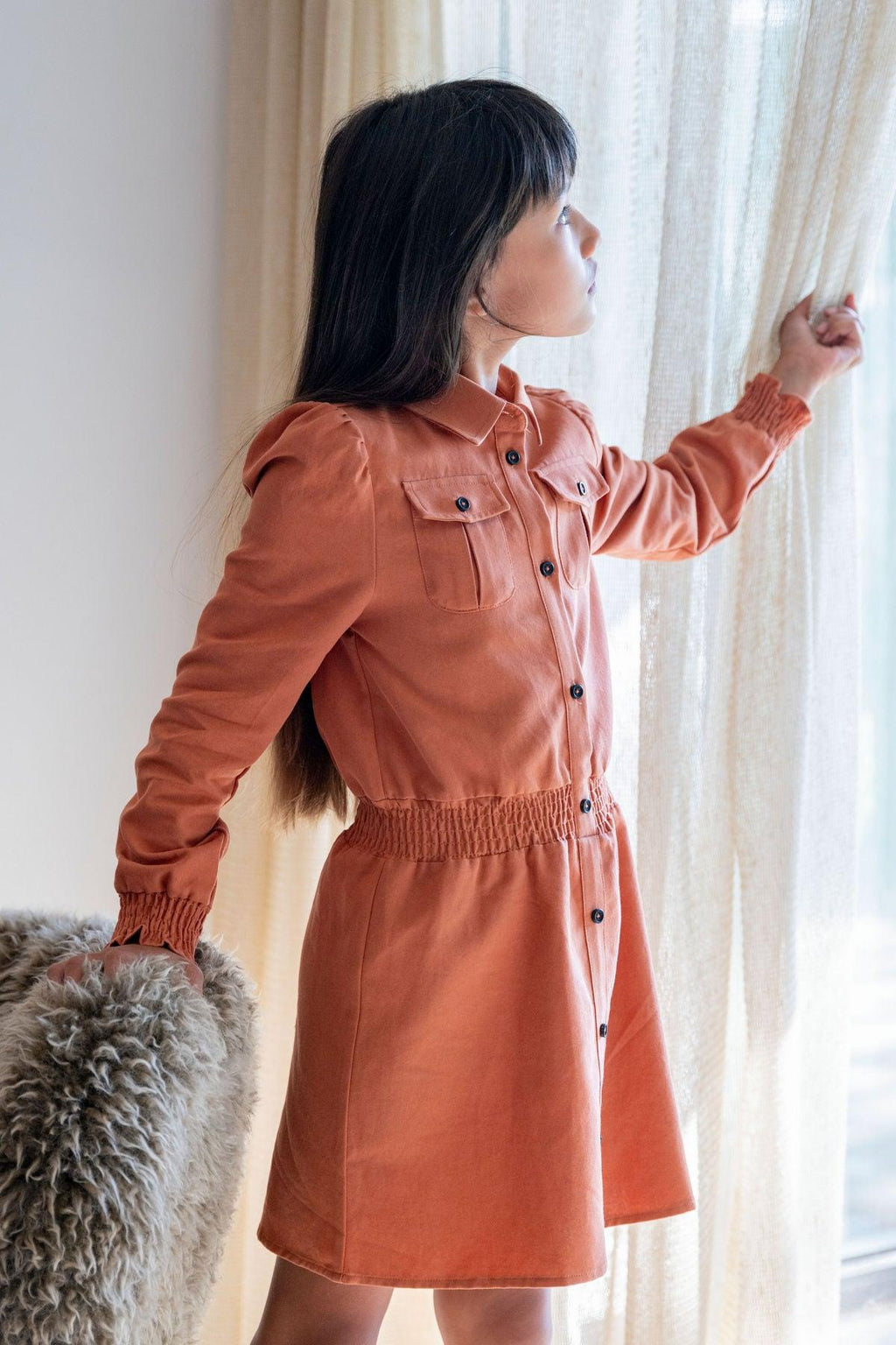 Jaaaa we love puffy oversized sleeves! Dit toffe ginger jurkje MOVA is vertaald naar een kind-proof sportieve versie. Dit geweven doorknoop jurkje is gemaakt van een mooie zachte twill stof en valt lekker soepel. Style hem af met een hip lammy gilet voor de look van deze winter. We hebben bewust voor dit viscose materiaal gekozen vanwege de positieve voetafdruk. Wist je dat er tijdens de productie geen CO2 uitstoot plaatsvindt en het veel minder water verbruikt dan bijvoorbeeld de productie van katoen? Hij krijgt van ons daarom het duurzame label Smart Choice.