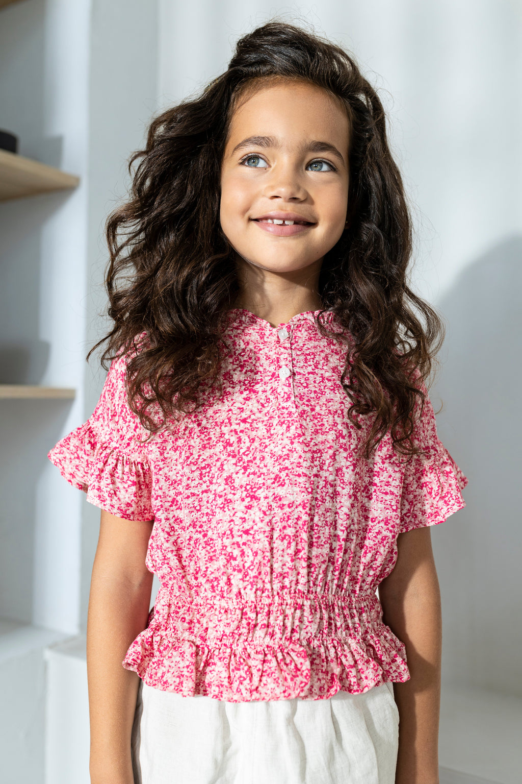 Flo girls AOP small flower ruffle blouse