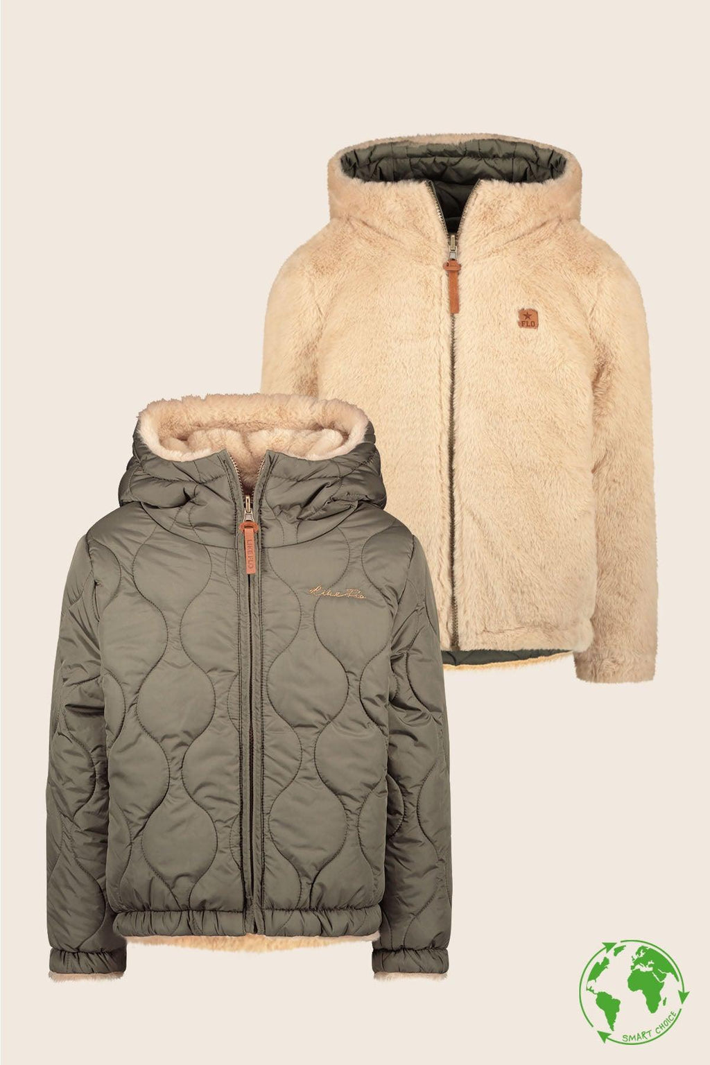 Like Flo duurzame reversibel winterjas gemaakt van recyclede polyester. Deze te gekke army kleurige jas met capuchon en ritssluiting kun je aan 2 kanten dragen. De ene kant is een functionele jas met stoere stiksels. De andere kant is gemaakt van een heerlijke zachte imitatie bont met cognac kleurige badge op de borst. Eigenlijk dus twee jassen in één! Wist je dat de army kleur een speciale coating heeft waardoor hij goed tegen regen kan en niet snel vies wordt. Wil je een duurzame winterjas, dan is dit een smart choice.