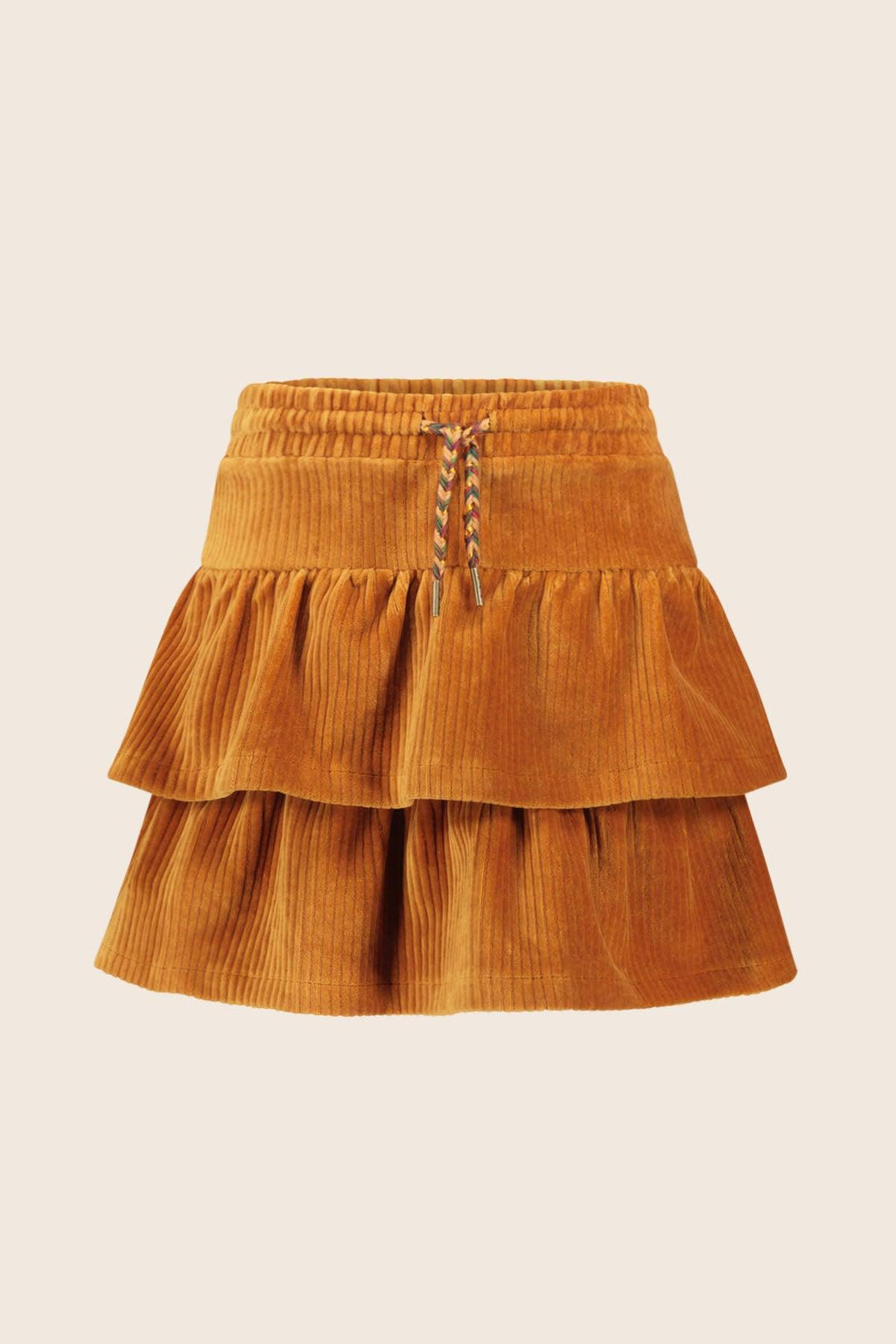 Looking for comy and fashionable? Dit toffe camel rib velours rokje HELENA heeft 2 stroken en is gemaakt van een zachte rib velours met lekker veel stretch. Hij is afgewerkt met een gevlochten multi colour koordje door de taille waardoor je hem met alle bovenstukken uit onze toffe wintercollectie kunt dragen. Een must-have voor je winter garderobe.