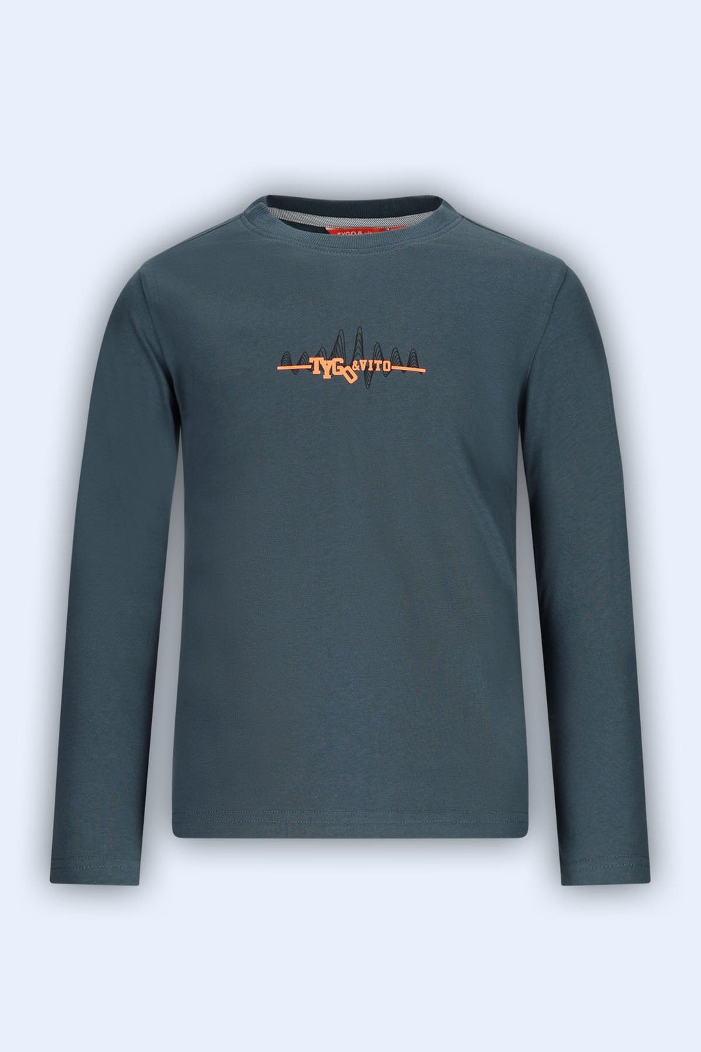 Deze groene longsleeve heeft een stoere print op de borst en is gemaakt van 100% biologisch katoen met GOTS-certificaat. Scan de QR-code en ontdek de reis die dit kledingstuk heeft afgelegd. Verkrijgbaar in maten 92 t/m 152.