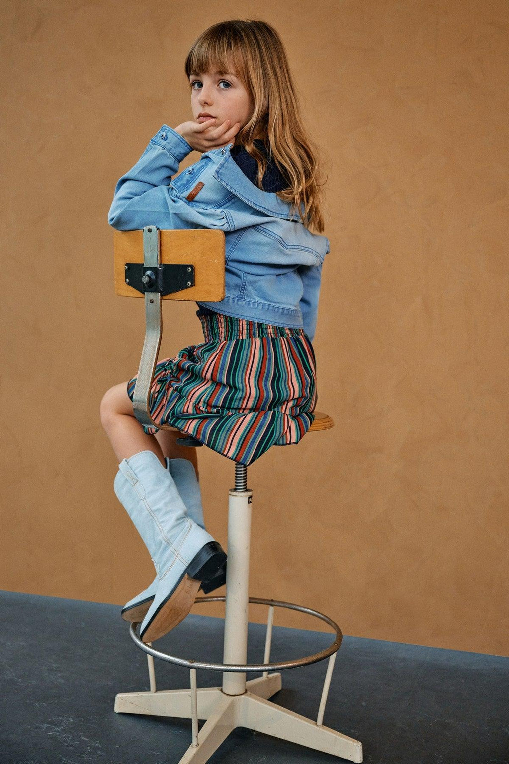 Heerlijk zittende combi jurk. De rok is gemaakt van gerecycled polyester en de top is gemaakt van rib jersey met een fancy structuur. De pofmouwen en hoge manchetten maken de jurk af! Heb je het trek detail bij de rok al gezien? Zo rimpel je het rokje iets omhoog voor een asymmetrisch en speels effect. Het rokdeel is gevoerd met een dunne katoenen voering.
