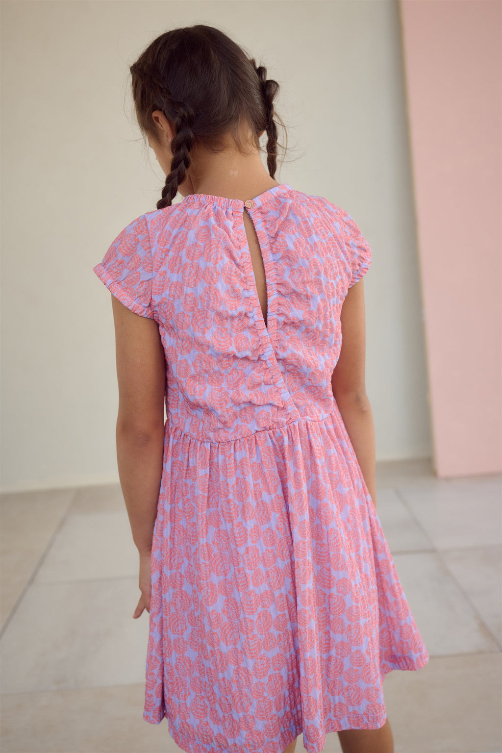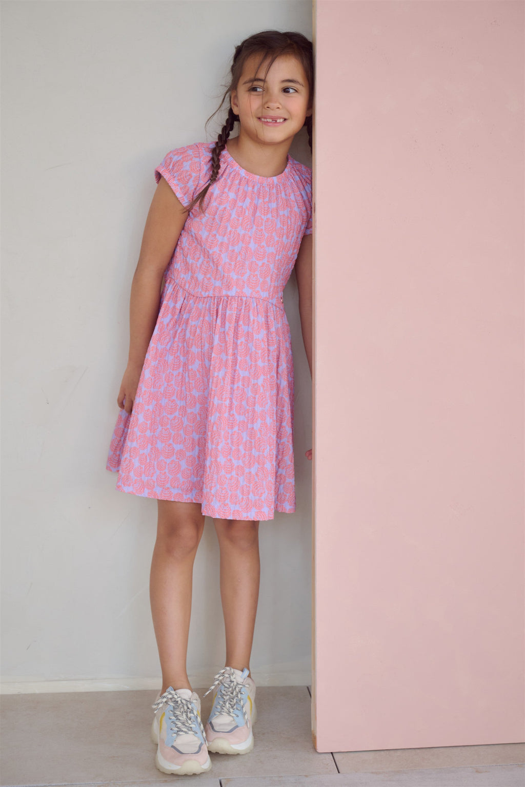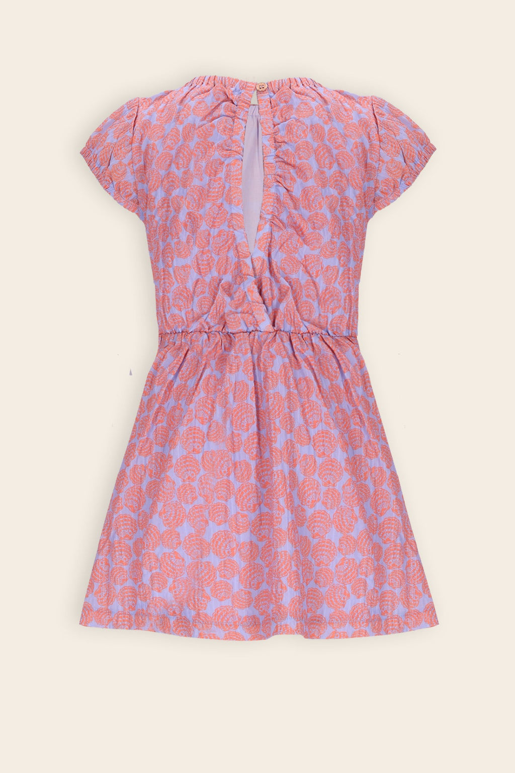 Deze paarse jurk van NoNo is een kleurrijke toevoeging aan de garderobe van elk creatief meisje. Het speelse schelpenprintje en het unieke open rug detail maken deze jurk een echte eyecatcher. Vervaardigd uit 100% recycled polyester en gevoerd met zacht katoen, biedt het zowel comfort als een gedurfde, avontuurlijke look die de eigen identiteit van je dochter viert.
