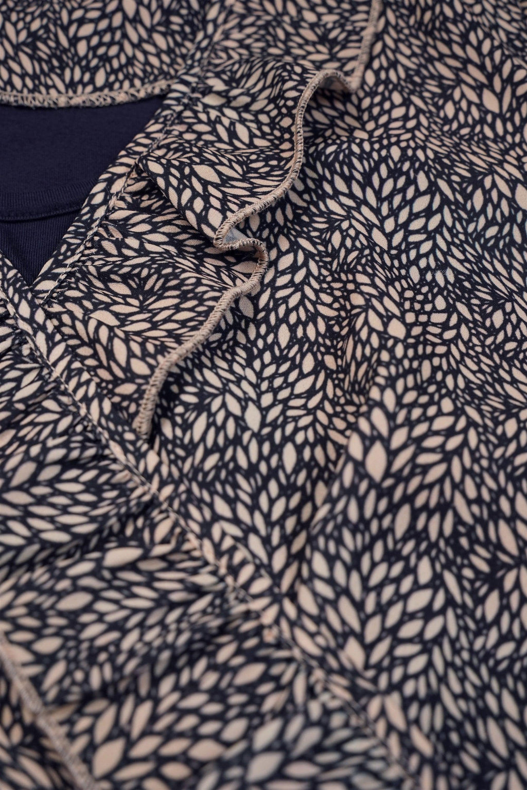 Met dit geprint overslag jurkje ben je in 1 keer klaar voor die speciale gelegenheid. Het fijne is dat de jurk al een jersey topvoering heeft, dus hoef je zelf niet opzoek naar het bijpassend topje. De mouwen hebben een smock verwerking bij de opening voor de perfect fit van de pofmouwen. De jurk is gemaakt van gerecycled polyester.