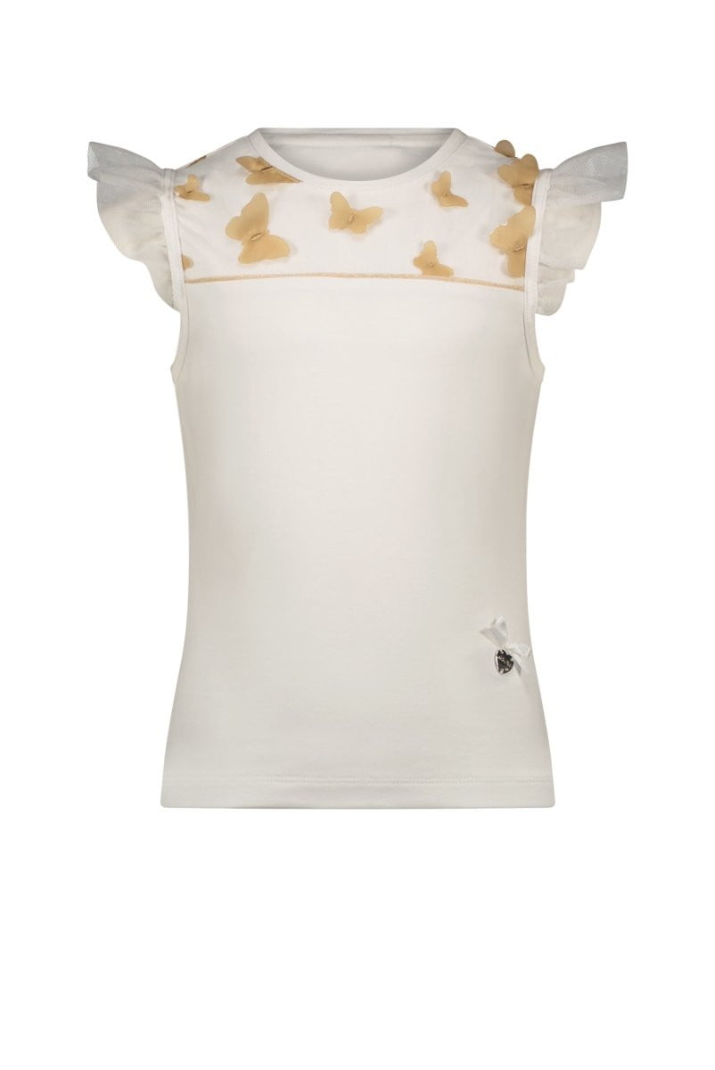 Mouwloos T-shirt met fraaie vlinder details. De ruffles op de schouder maken van dit model een echte eye-catcher.